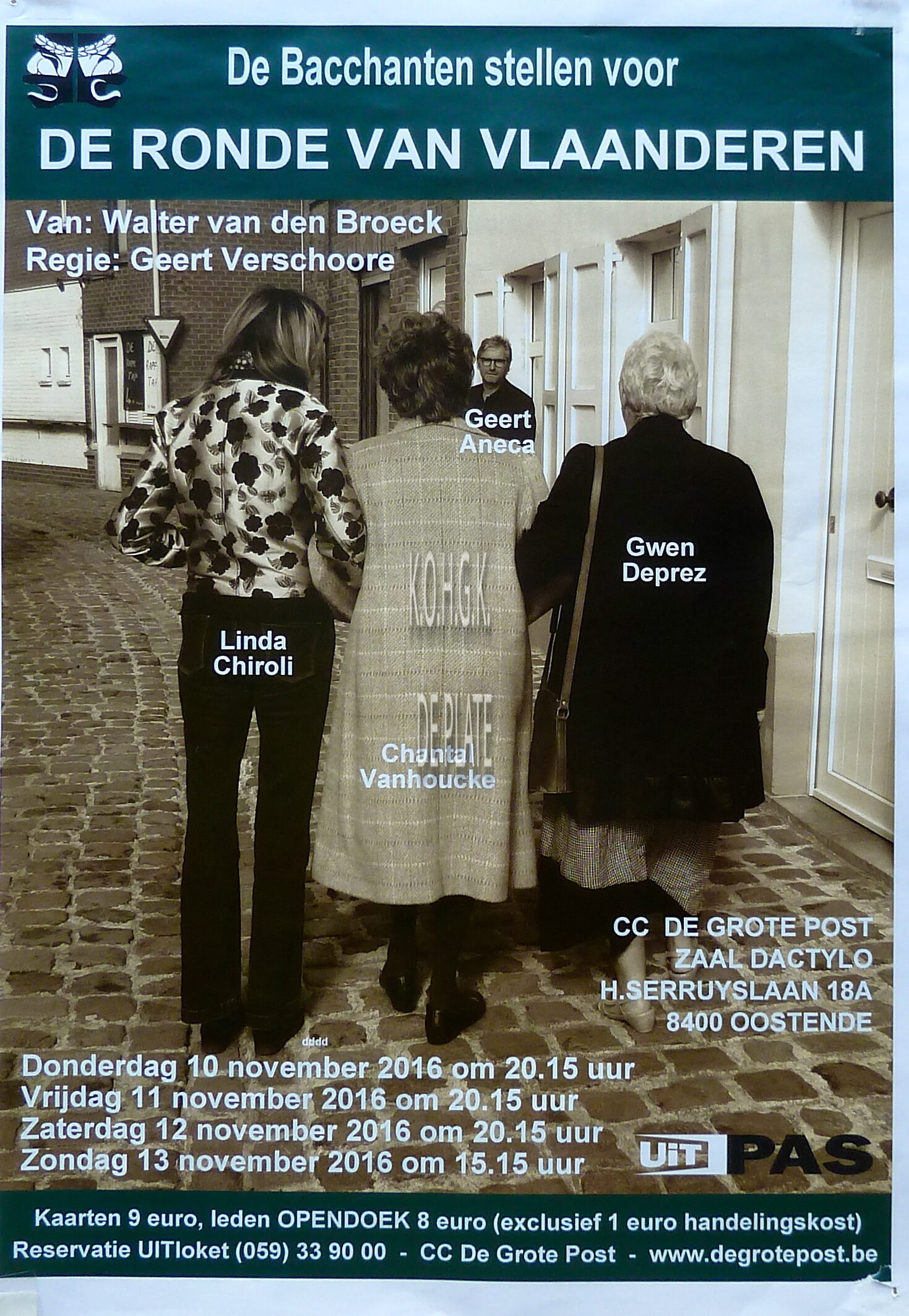 Omschrijving Formaat : 42 x 30 cm. - Van : Walter van den Broeck. Regie : Geert Vershcoore Trefwoorden AFFICHES DE BACCHANTEN (TONEELVERENIGING) DE RONDE VAN VLAANDEREN (TONEELSTUK) TONEELSTUKKEN VAN DEN BROECK WALTER (AUTEUR) VERSCHOORE GEERT (TONEELREGISSEUR) CULTUURCENTRUM DE GROTE POST ; TONEEL Plaatskenmerk ZOLDER 301 LKA/14/792/34/2016-11 Inventarisnummers 2017/2760 11/ 2016 Collectie Toneel De Bacchanten Print