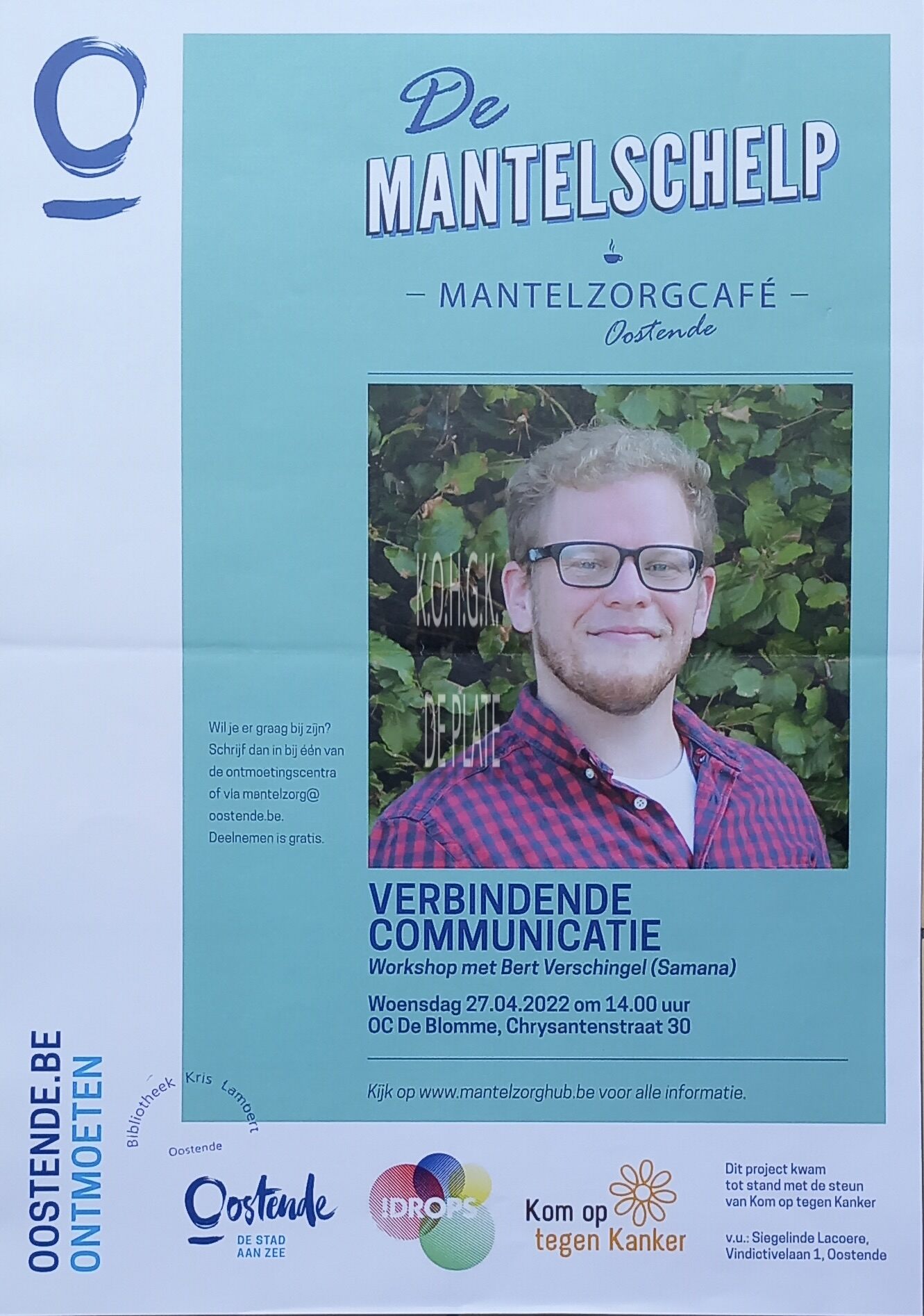 Affiche : De Mantelschelp. Verbindende communicatie. OC De Blomme. 27/04/2022