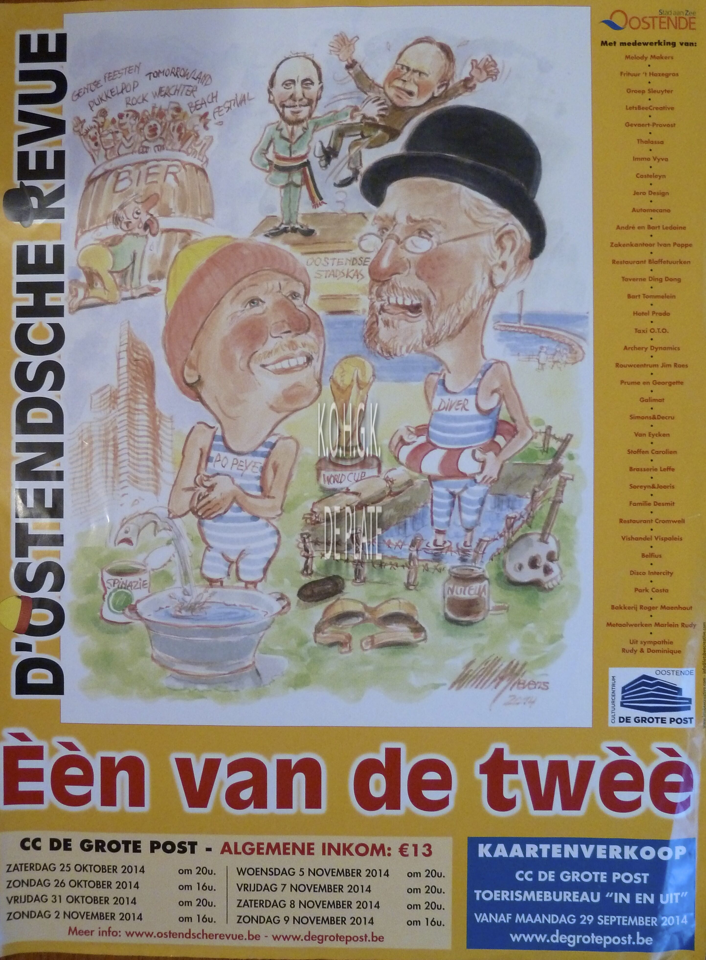 Omschrijving Formaat : 67 x 50 cm. - Ontwerp : William Lievens Trefwoorden AFFICHES OOSTENDSE REVUE (NAAM) LIEVENS WILLIAM (CARTOONIST OPVOEDER) CULTUURCENTRUM DE GROTE POST ; EVENEMENTEN EEN VAN DE TWEE (REVUE) Plaatskenmerk ZOLDER 301 LKA/16/797/34/2014 Inventarisnummers 2019/0990 2014 Herkomst BIBLIOTHEEK KRIS LAMBERT Collectie Variéte Oostendse Revue Print