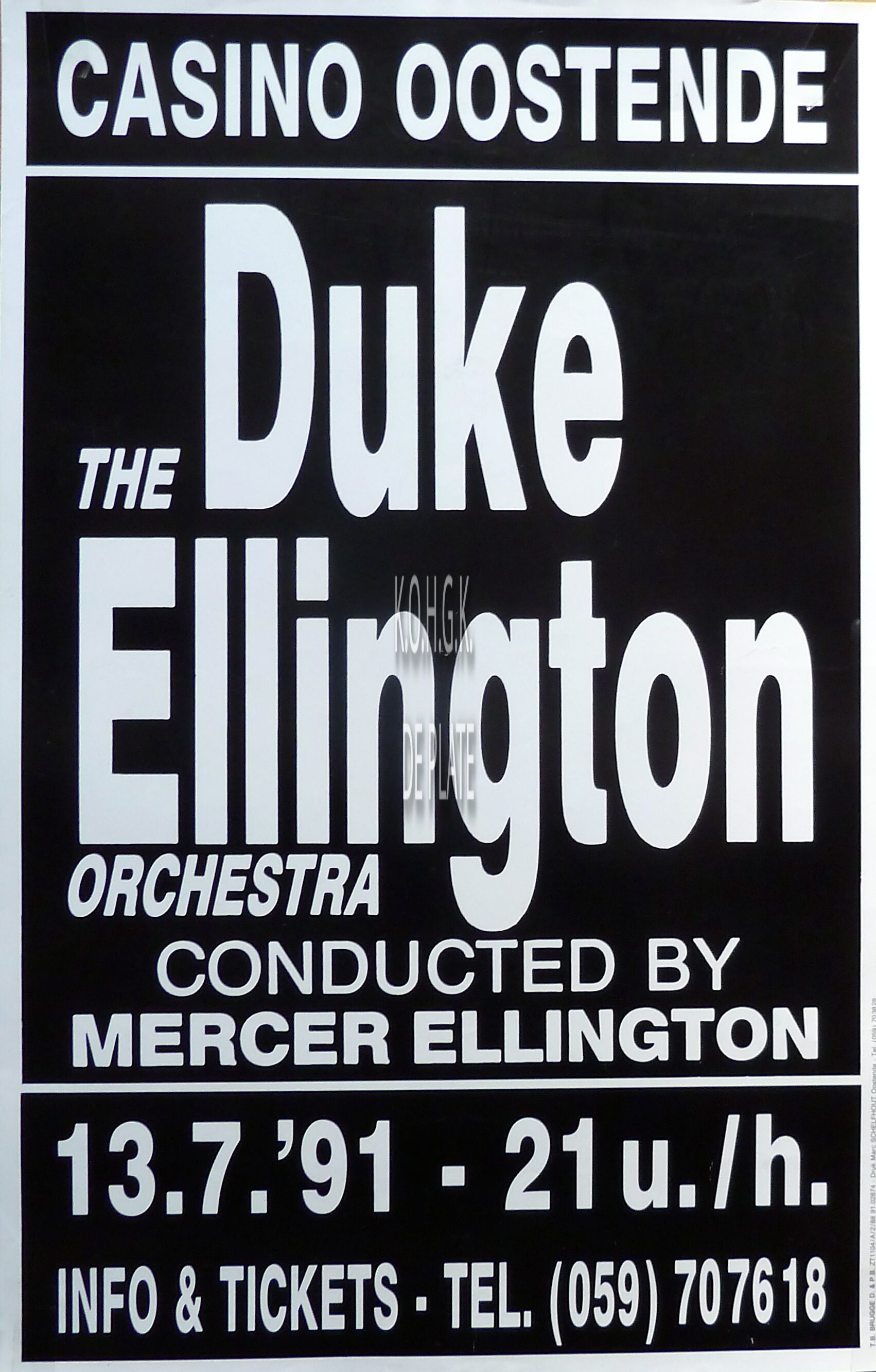 Affiche : The Duke Ellington Orchestra. Casino Oostende. 13/07/1991