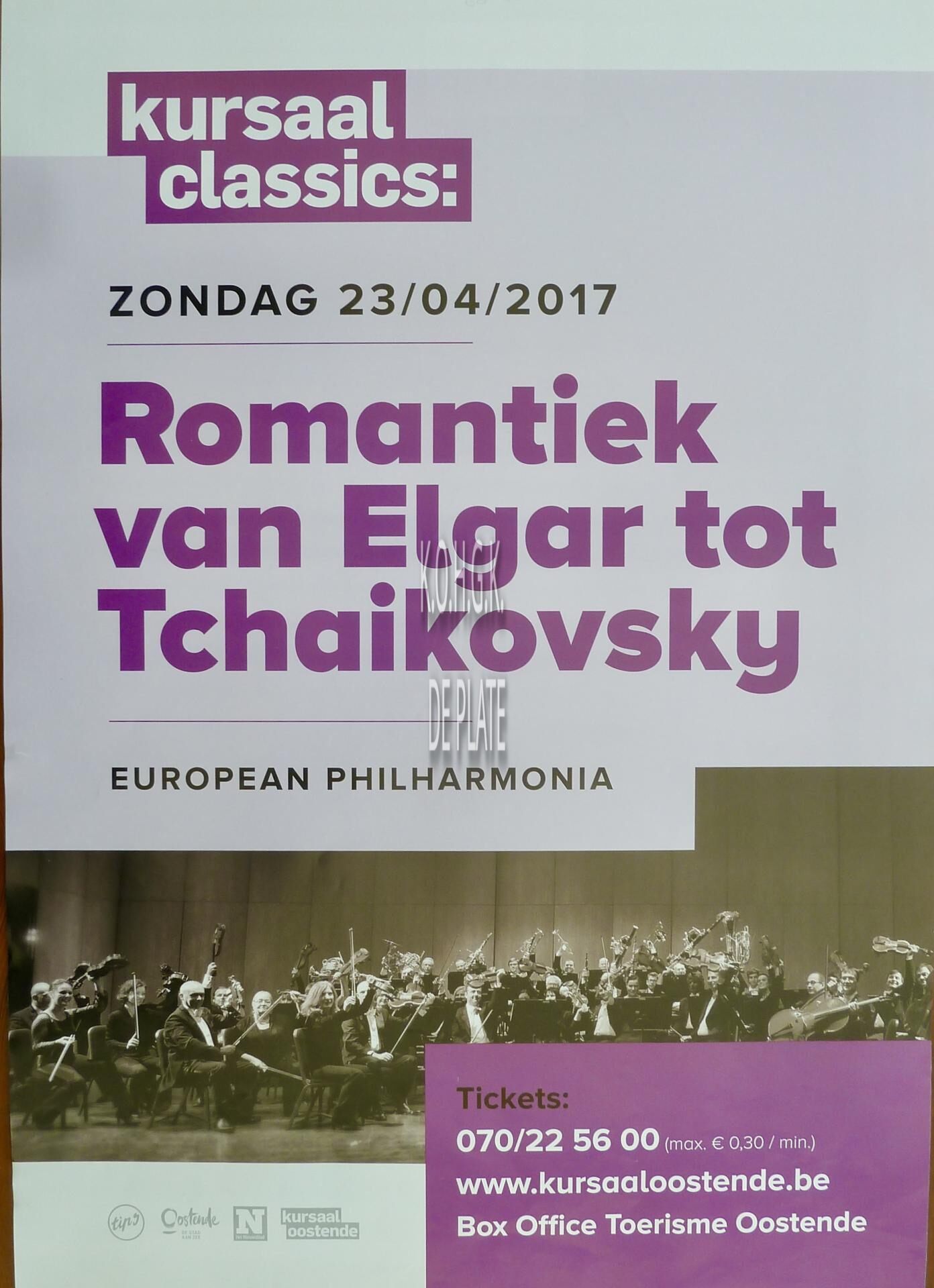Affiche : Euopean Philharmonia. Kursaal Classics : Romantiek van Elgar tot Tchaikovsky. Kursaal Oostende. 23/04/2017