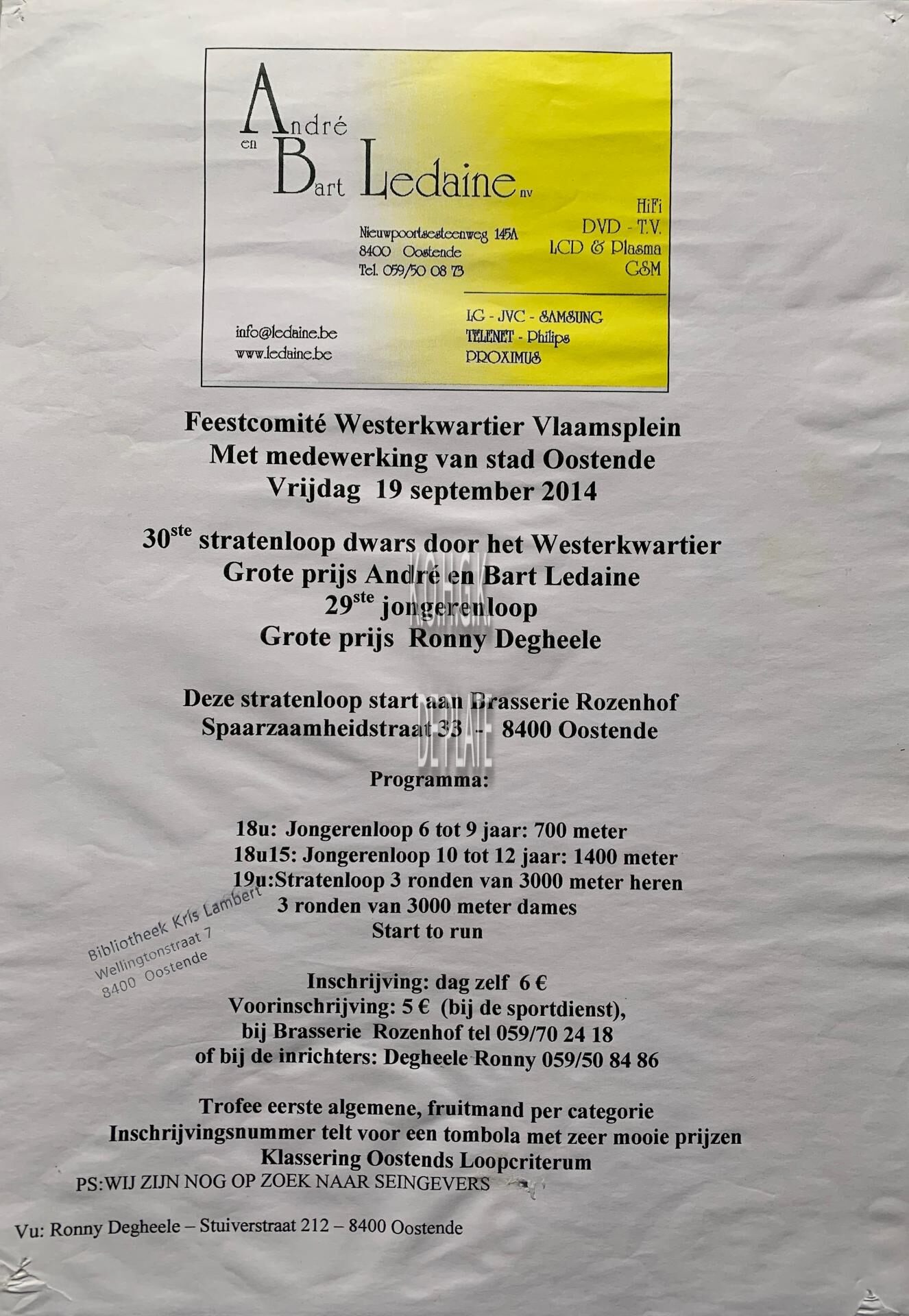 Affiche : Feestcomité Westerkwartier Vlaams Plein. 30ste stratenloop dwars door het Westerkwartier. 19/09/2014
