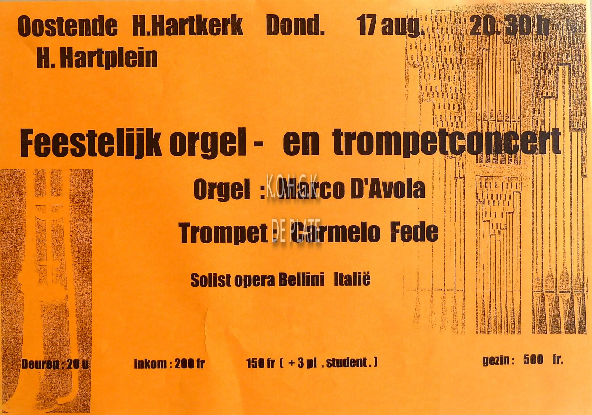 Omschrijving Formaat : 30 x 42 cm. - Orgel : Marco d'Avola. Trompet : Carmelo Fede Trefwoorden AFFICHES HEILIG HARTKERK (PAROCHIEKERK) MUZIEK ; CONCERTEN Plaatskenmerk ZOLDER 301 LKA/12/780/52/0001 Inventarisnummers 2022/1614 Herkomst AANKOOP Collectie Muziek Heilig Hartkerk Print