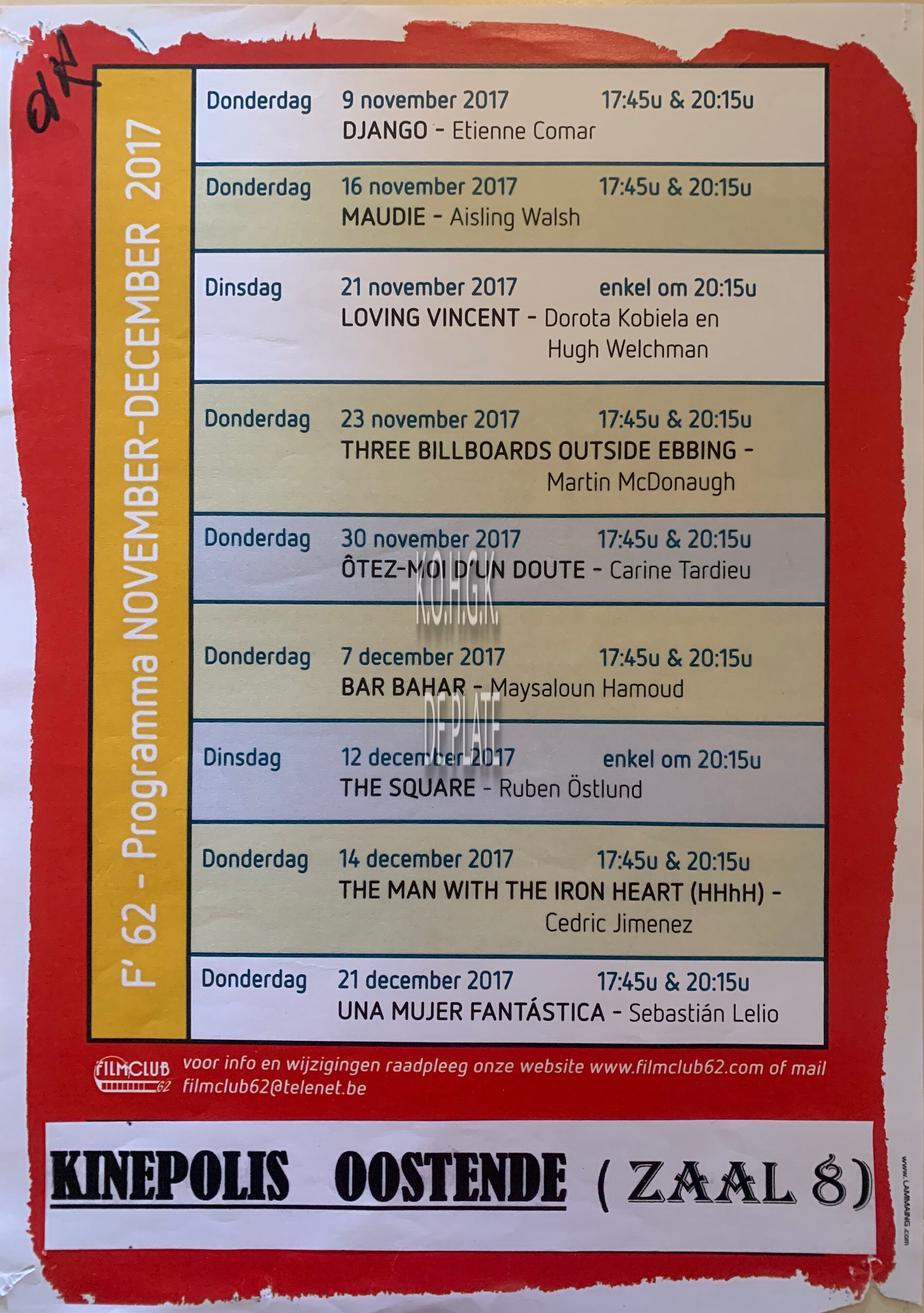 Omschrijving Formaat : 42 x 30 cm. Trefwoorden AFFICHES FILMCLUB 62 KINEPOLIS (CINEMA) FILMVOORSTELLINGEN Plaatskenmerk ZOLDER 301 LKA/01/798/34/2017 Inventarisnummers 2019/1106 2017 Herkomst BIBLIOTHEEK KRIS LAMBERT Collectie Film Kinepolis Print