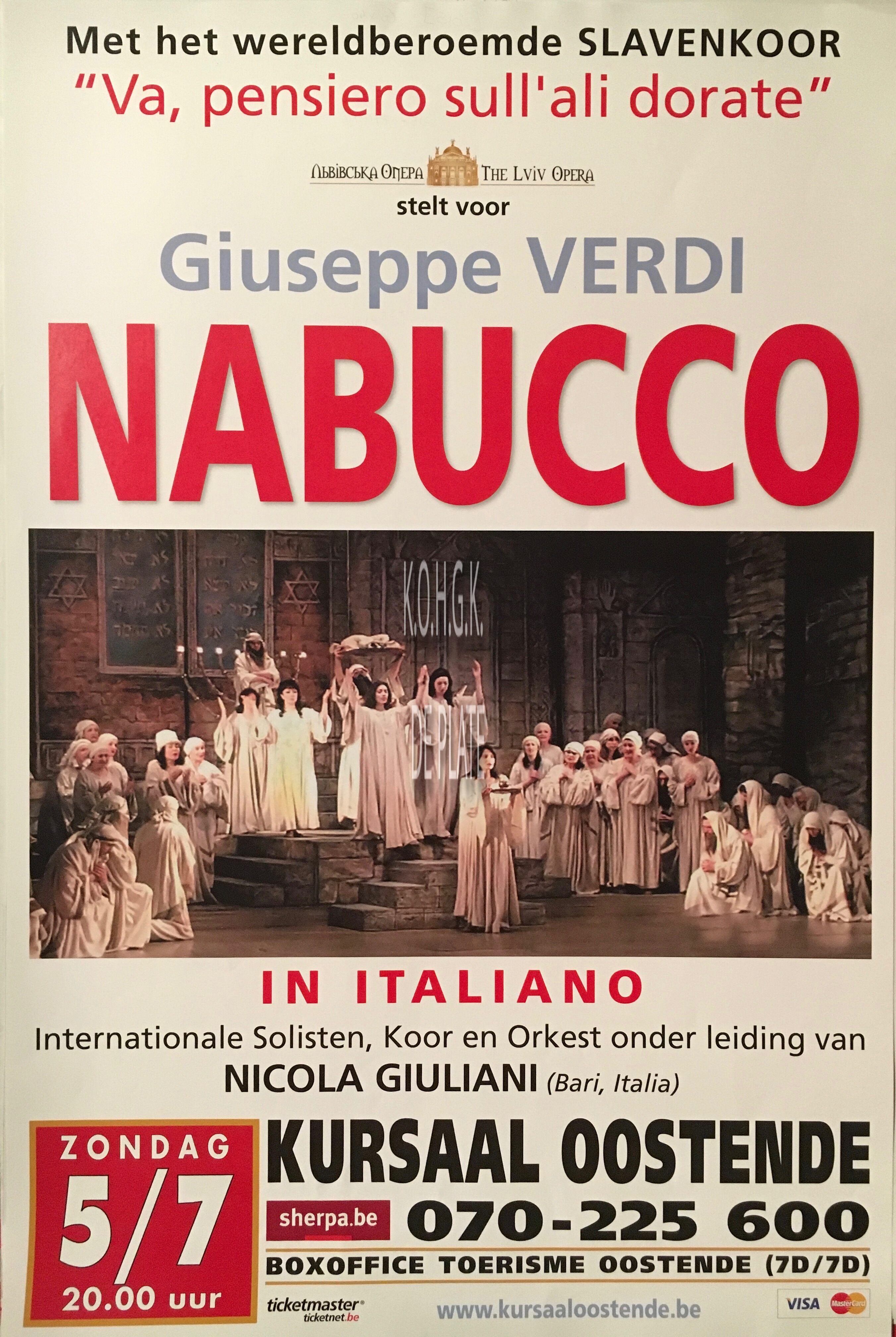 Omschrijving Formaat: 60 x 40 cm. Trefwoorden AFFICHES CASINO-KURSAAL ; CONCERTEN OPERA'S EN OPERETTES MUZIEK ; CONCERTEN VERDI GIUSEPPE (1813-1901) (COMPONIST) NABUCCO (OPERA) Plaatskenmerk ZOLDER 301 LKA/11/780/11/2015-07/MAP 6 Inventarisnummers 2018/0325 07/ 07/ 2015 Herkomst Casino Kursaal Collectie Muziek Casino-Kursaal Print