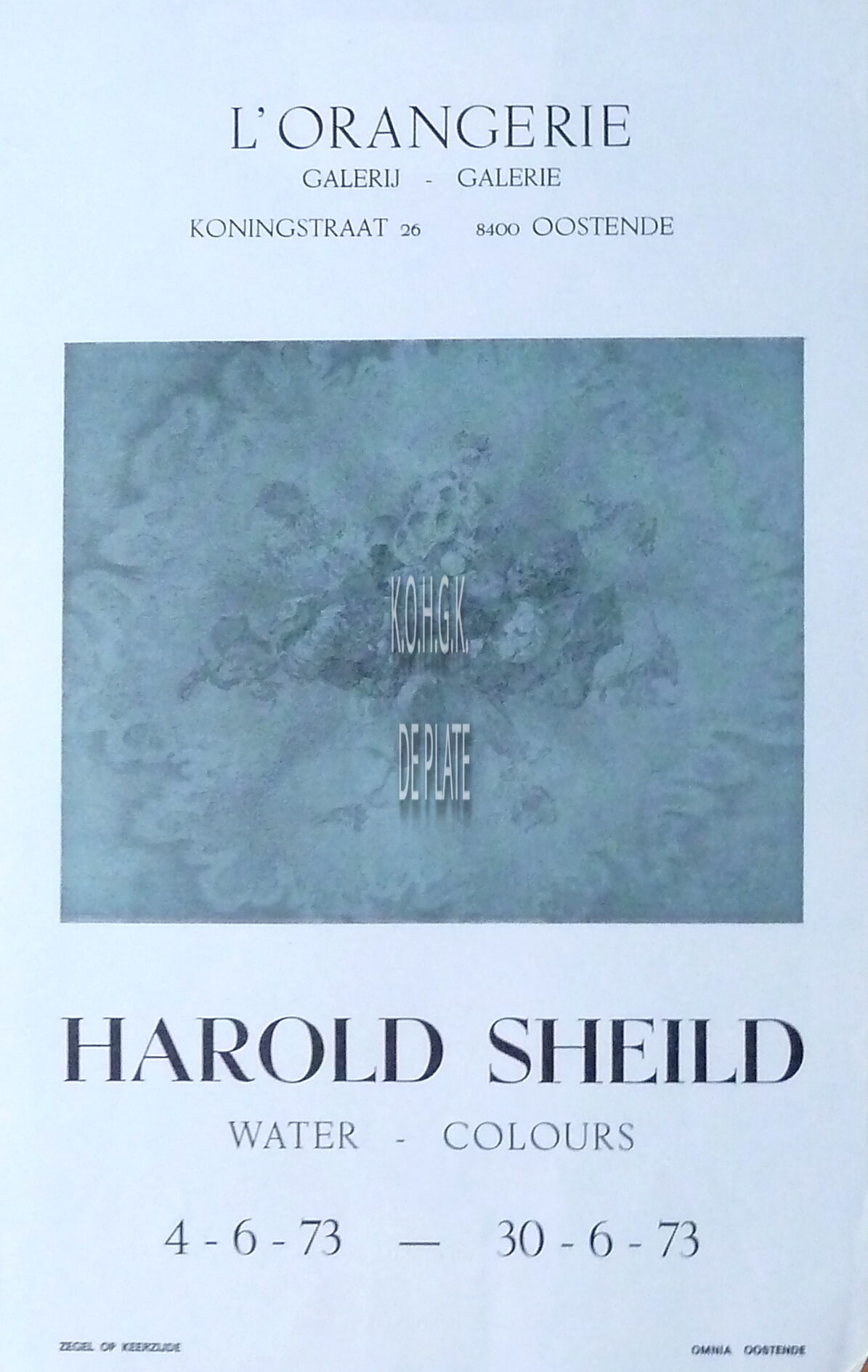 Affiche : Harold Sheild. Water colours. Tentoonstelling. Galerij L'Orangerie. 4 - 30.6.1973