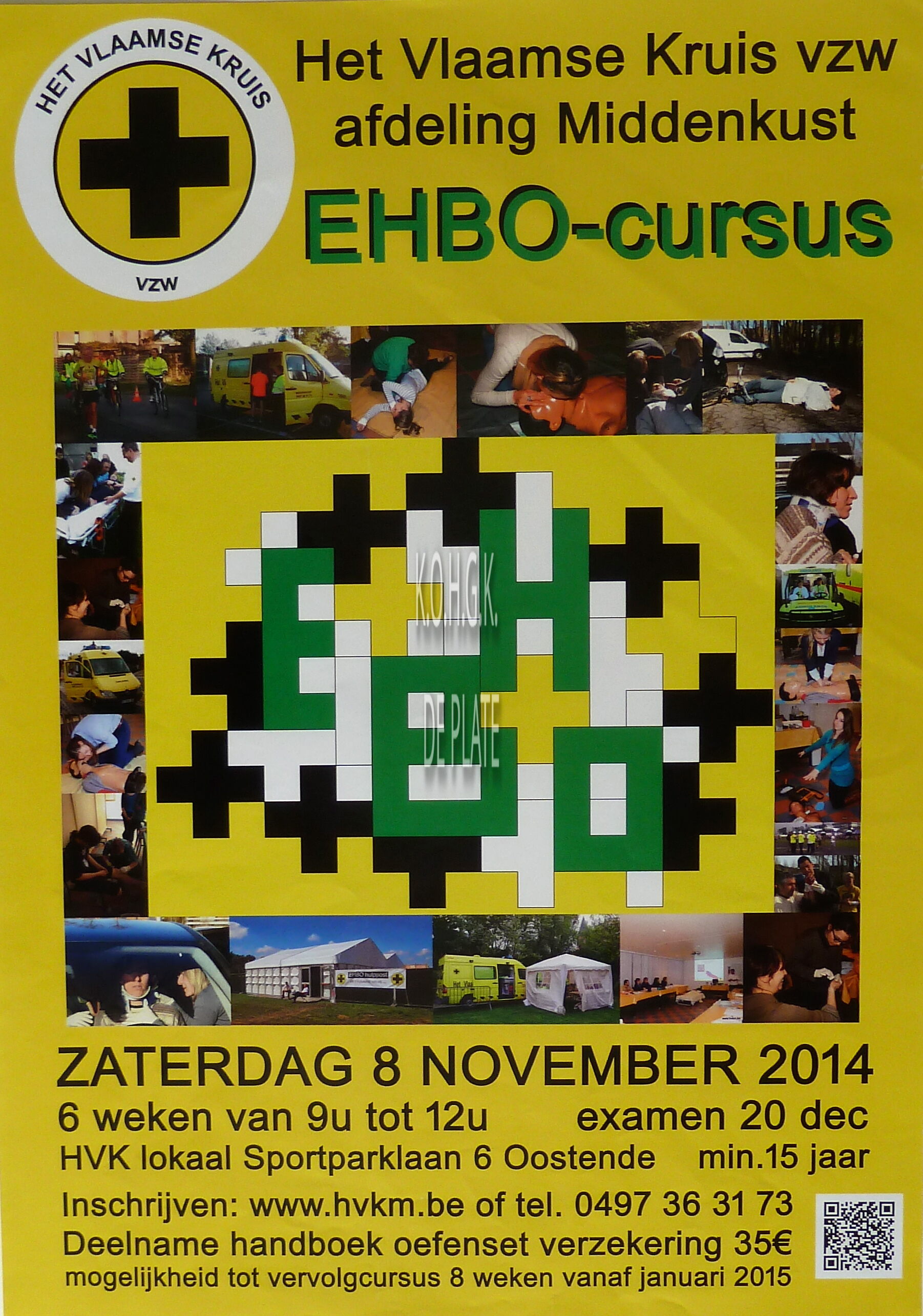 Affiche : Het Vlaamse Kruis vzw afdeling Middenkust. EHBO-cursus. Sportparklaan 6. 08/11/2014