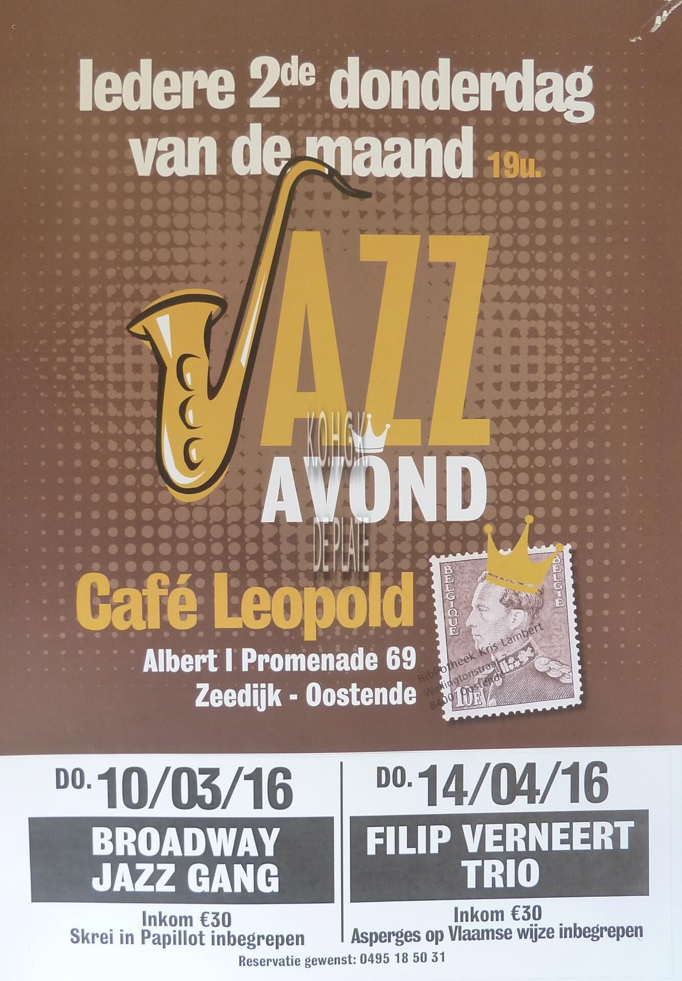 Omschrijving Formaat : 42 x 30 cm. - Albert I-promenade 69, Oostende Trefwoorden AFFICHES JAZZ ; CONCERTEN MUZIEK ; CONCERTEN CAFE LEOPOLD THE BROADWAY JAZZ GANG FILIP VERNEERT TRIO (JAZZ) Plaatskenmerk ZOLDER 301 LKA/12/780/55/2016 Inventarisnummers 2022/1623 2016 Collectie Muziek Jazz Print