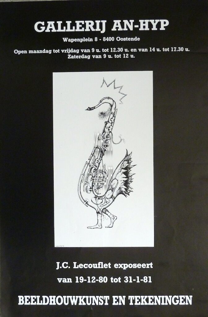 Affiche : J.C. Lecouflet. Beeldhouwkunst en tekeningen. Gallerij An-Hyp. Van 19-12-1980 tot 31-1-1981.