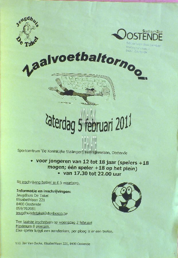 Formaat : 42 x 30 cm. Voor jongeren van 12 tot 18 jaar ( spelers + 18 mogen; één speler +18 op het plein). Van 17.30 tot 22.00 uur.