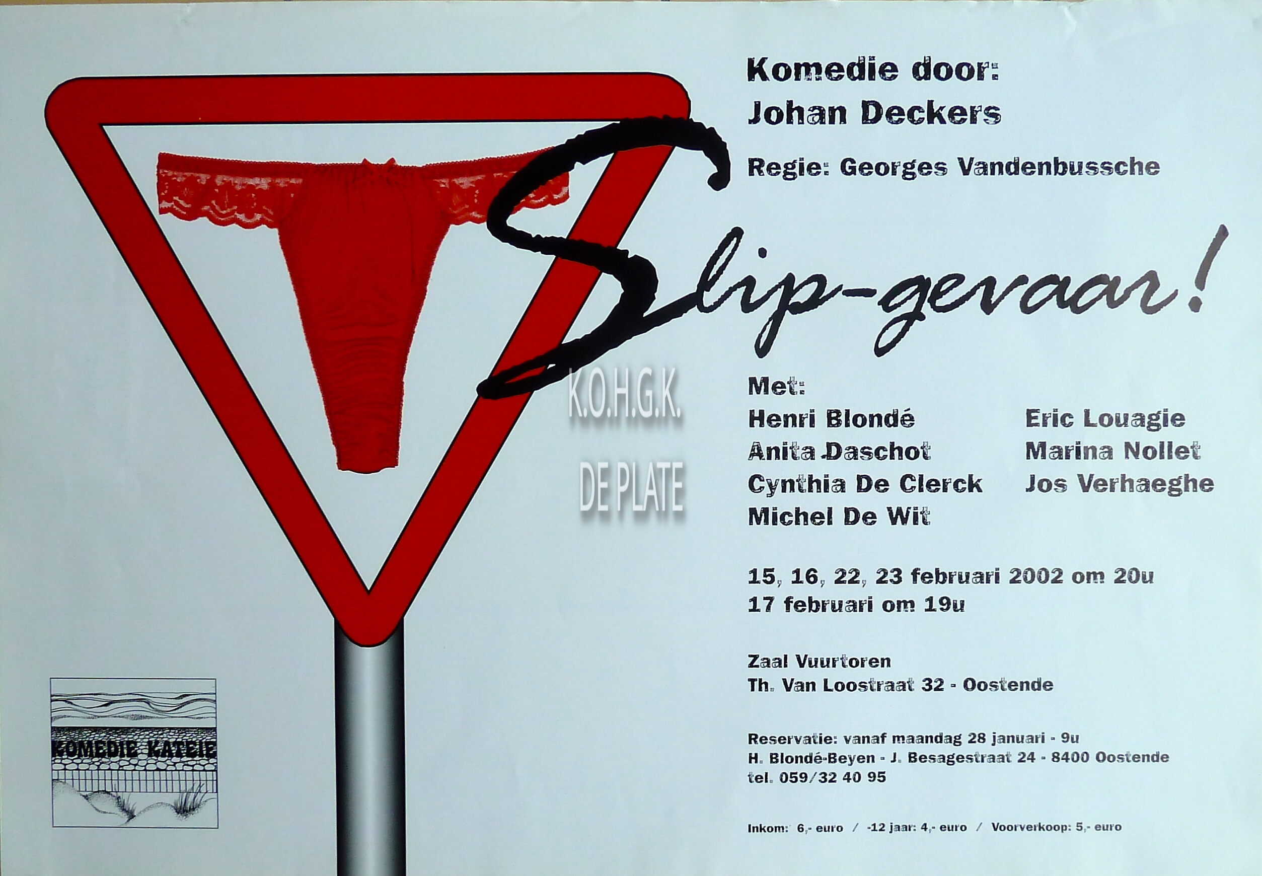 Omschrijving Formaat : 35 x 40 cm. - Komedie door : Johan Deckers. Regie : Georges Vandenbussche Trefwoorden AFFICHES KOMEDIE KATEIE (TONEELVERENIGING) SLIP-GEVAAR (TONEELSTUK) DECKERS JOHAN (AUTEUR) VANDENBUSSCHE GEORGES (TONEELREGISSEUR) ZAAL VUURTOREN (THOMAS VAN LOOSTRAAT) Plaatskenmerk ZOLDER 301 LKA/14/792/43/2002-02 Inventarisnummers 2017/2763 02/ 2002 Collectie Toneel Komedie Kateie Print