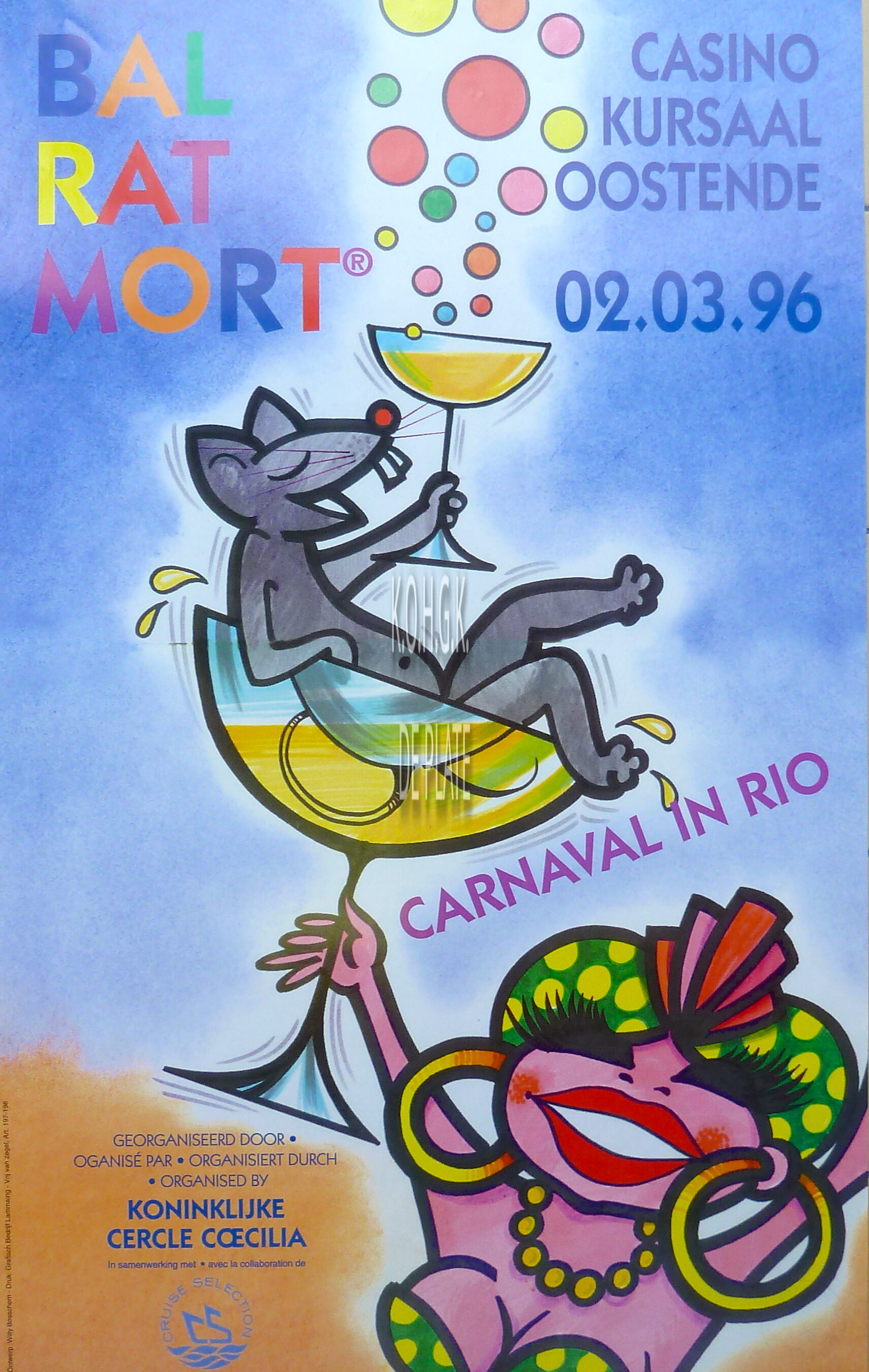Affiche : Koninklijke Coecilia Kring. Bal Rat Mort. Carnaval in Rio. Casino-Kursaal Oostende. 02/03/1996