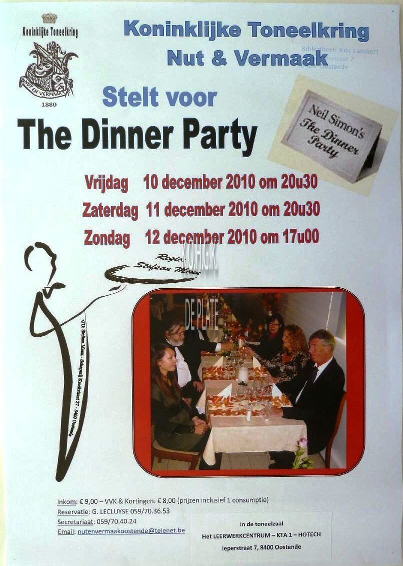 Omschrijving Formaat : 42 x 30 cm. - Neil Simon's The dinner Party. Regie : Stefaan Menu Trefwoorden AFFICHES NUT EN VERMAAK (TONEELVERENIGING) TONEELSTUKKEN THE DINNER PARTY (TONEELSTUK) SIMON NEIL (AUTEUR) MENU STEFAAN (TONEELSPELER REGISSEUR) LEERWERKCENTRUM KTA1 HOTECH (IEPERSTRAAT) Plaatskenmerk ZOLDER 301 LKA/15/792/50/2010 Inventarisnummers 2011/0528 12/ 2010 Uitgever Stefaan Menu Herkomst BIBLIOTHEEK KRIS LAMBERT Collectie Toneel Nut en Vermaak Print