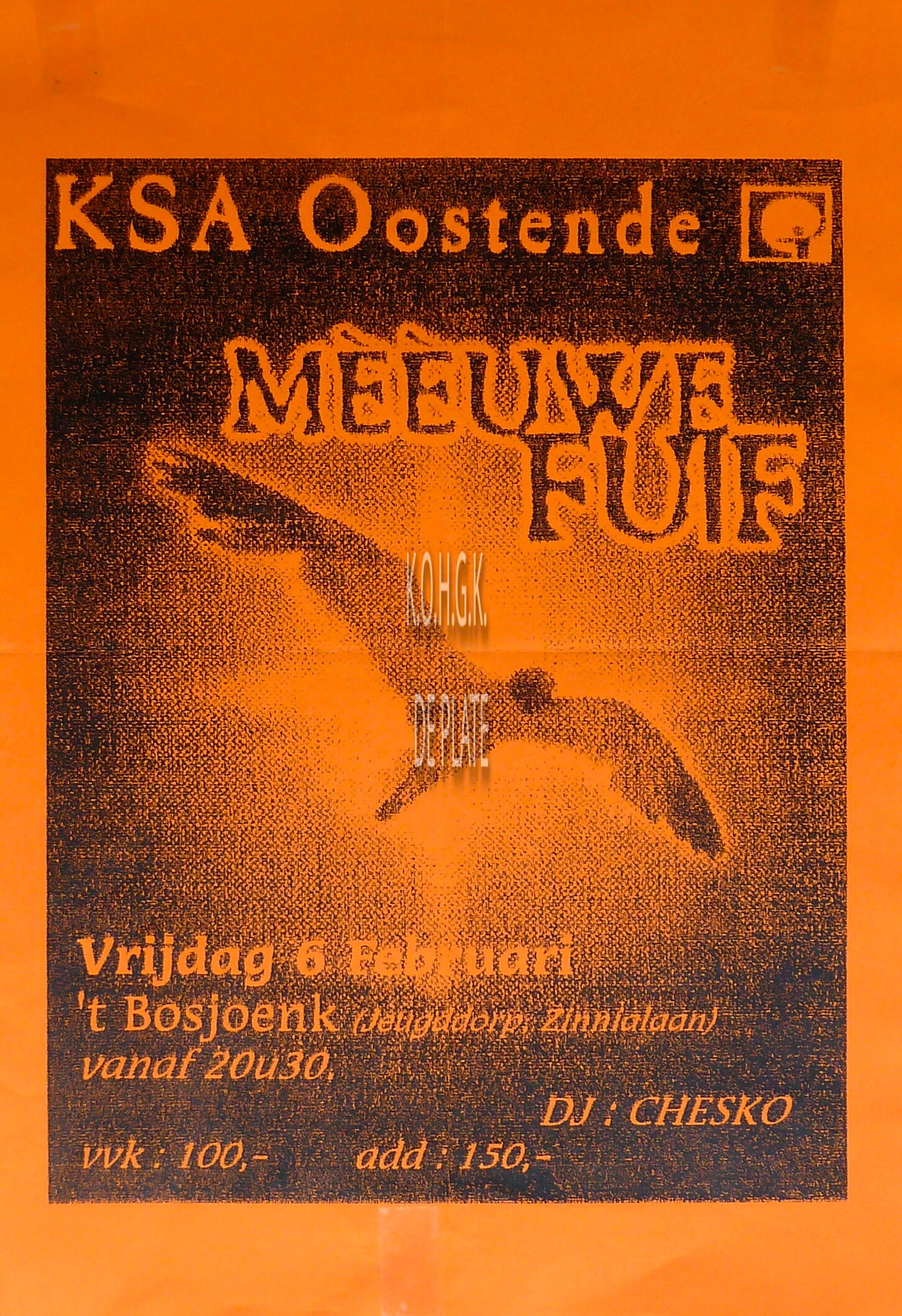 Omschrijving Formaat : 42 x 30 cm. - DJ : Chesko Trefwoorden AFFICHES FUIF 'T BOSJOENK (POLYVALENTE ZAAL) KSA MEEUWENNEST OOSTENDE Plaatskenmerk ZOLDER 301 LKA/19/912.2/45/0006 Inventarisnummers 1998/0102 Herkomst DESNERCK DANIEL Collectie Wijkfeesten - Kermissen 't Bosjoenk Print