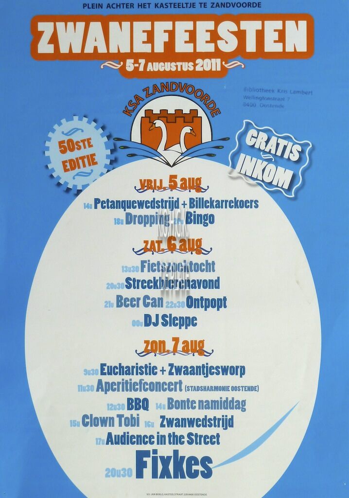 Omschrijving Formaat : 30 x 42 cm. Optreden Dj Sleppe, Clown Tobi en Fixkes. Trefwoorden AFFICHES ZWANEFEESTEN WIJKFEESTEN WIJKEN EN STRATEN ; ZANDVOORDE KSA ZANDVOORDE Plaatskenmerk ZOLDER 301 LKA/19/912.2/52/2011-08 Inventarisnummers 2012/0904 08/ 2011 Uitgever Berlo Jan Herkomst BIBLIOTHEEK KRIS LAMBERT Collectie Wijkfeesten - Kermissen Zwanefeesten Print
