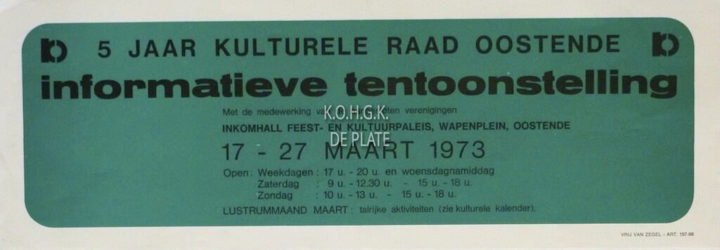 Omschrijving Formaat : 43 x 15 cm Trefwoorden AFFICHES KULTURELE RAAD OOSTENDE (SOCIO- CULTURELE VERENIGING) FEEST- EN CULTUURPALEIS ; TENTOONSTELLINGEN Plaatskenmerk ZOLDER 301 LKA/04/493/48/1973-03 Inventarisnummers 1977/0472 03/ 1973 Collectie Socio- Culturele Verenigingen Culturele Raad Oostende Print