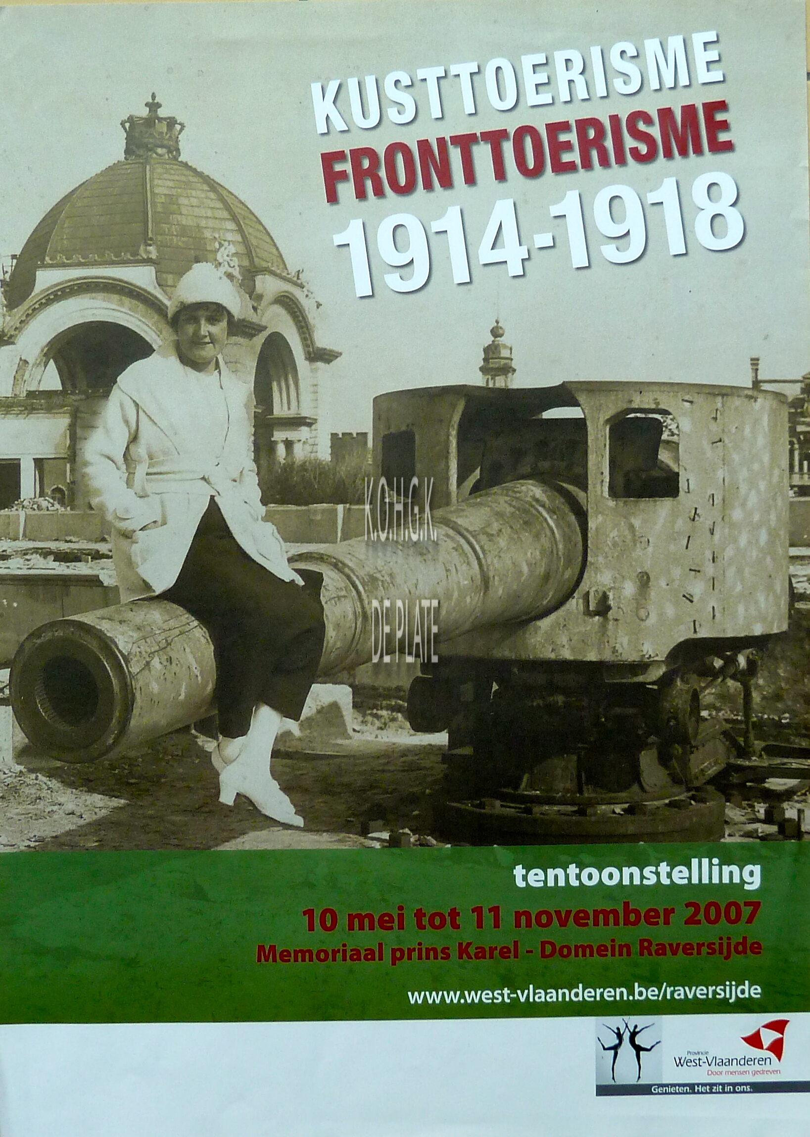 Affiche : Kusttoerisme Fronttoerisme 1914-1918. Tentoonstelling. Domein Raversijde. Memoriaal Prins Karel. 10 mei tot 11 november 2007