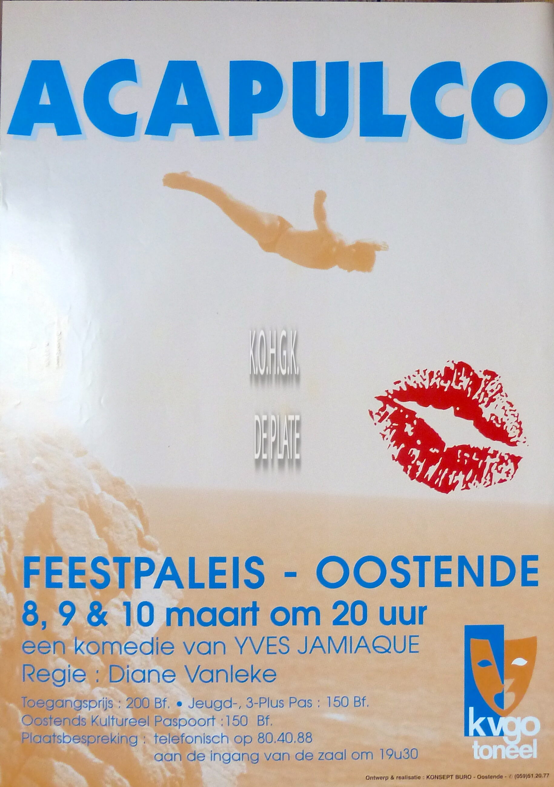 Omschrijving Formaat: 59 x 42 cm. Een komedie van Yves Jamiaque. Regie : Diane Vanleke Trefwoorden AFFICHES TONEELSTUKKEN KVGO (TONEEL) FEEST- EN CULTUURPALEIS ; TONEEL ACAPULCO (TONEELSTUK) JAMIAQUE YVES (AUTEUR) VANLEKE DIANE (1951-2022) (TONEELSPEELSTER TONEELREGISSEUSE LERARES) Plaatskenmerk ZOLDER 301 LKA/14/792/45/0001 Inventarisnummers 1996/0090 Vervaardiger Konsept Buro Herkomst SMISSAERT EMILE Collectie Toneel KVGO Print