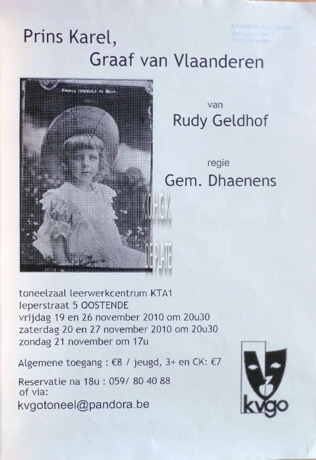 Omschrijving Formaat : 42 x 30 cm. Prins Karel, Graaf van Vlaanderen van Rudy Geldhof. Regie Gem. Dhaenens. Trefwoorden AFFICHES KVGO (TONEEL) TONEELSTUKKEN LEERWERKCENTRUM KTA1 HOTECH (IEPERSTRAAT) DHAENENS GEM. (REGISSEUR) PRINS KAREL GRAAF VAN VLAANDEREN (TONEELSTUK) GELDHOF RUDY (AUTEUR) Plaatskenmerk ZOLDER 301 LKA/14/792/45/2010 Inventarisnummers 2011/0670 11/ 2010 Herkomst BIBLIOTHEEK KRIS LAMBERT Collectie Toneel KVGO Print