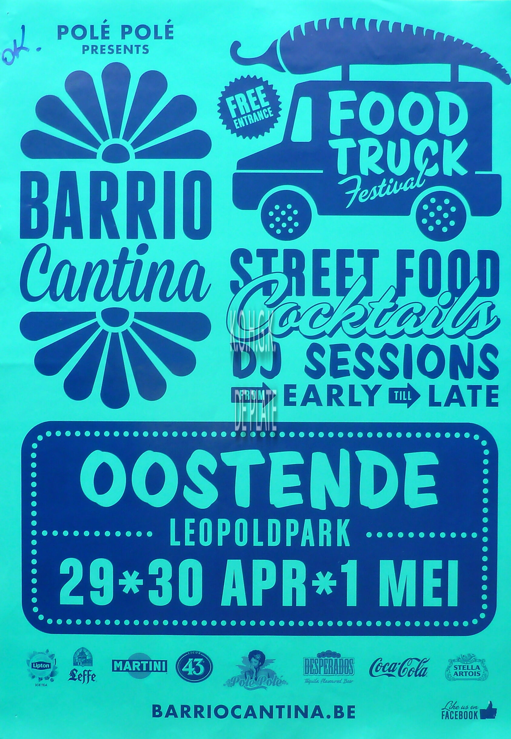 Affiche : Leopoldpark Oostende. Polé Polé presents. Food Truck Festival. Barrio Cantina. 29-30/04-01/05/