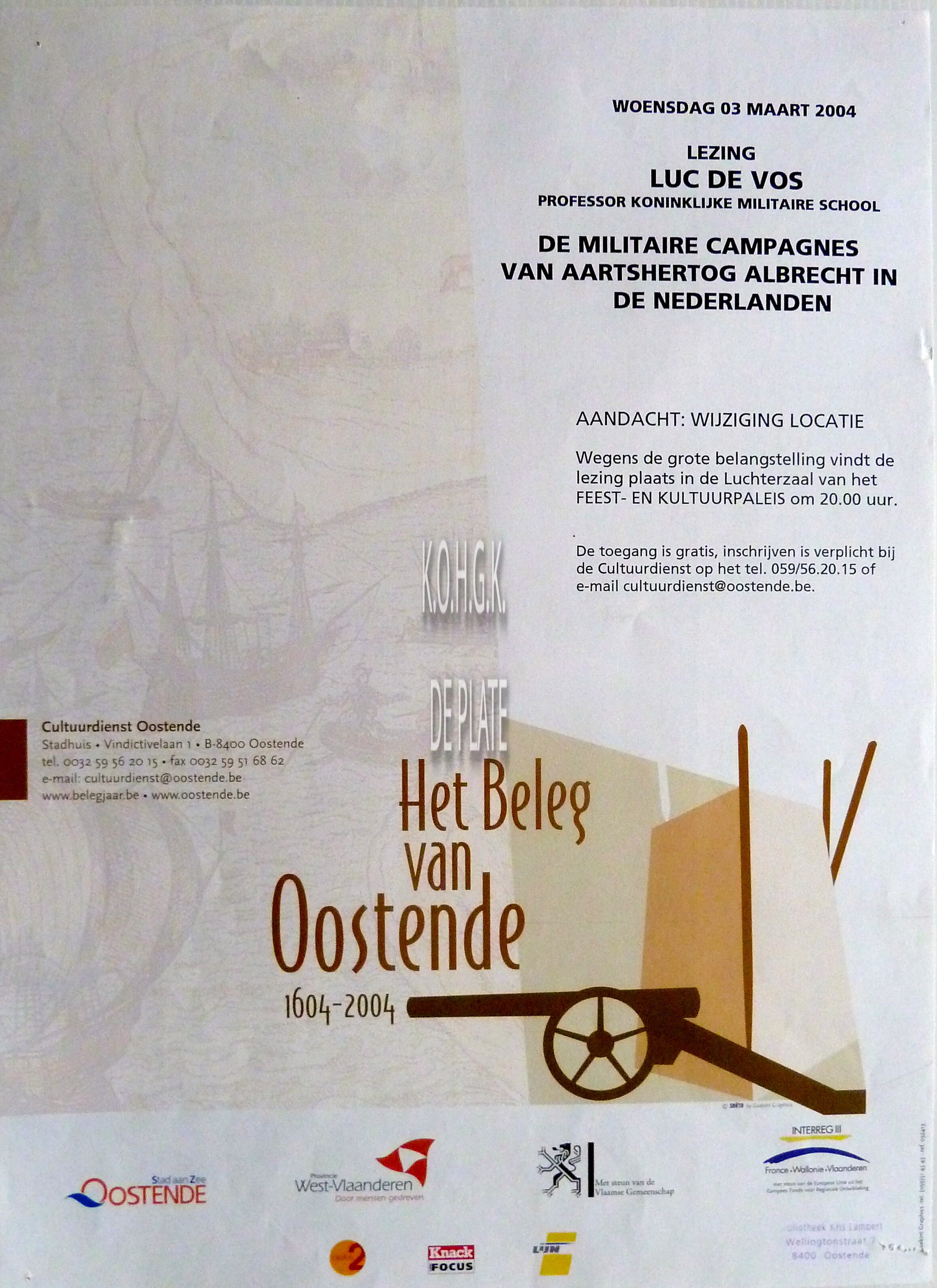 Affiche : Luc De Vos. De militaire campagnes van Aartshertog Albrecht in de Nederlanden. Lezing. Feest- en Kultuurpaleis. 03/03/2004