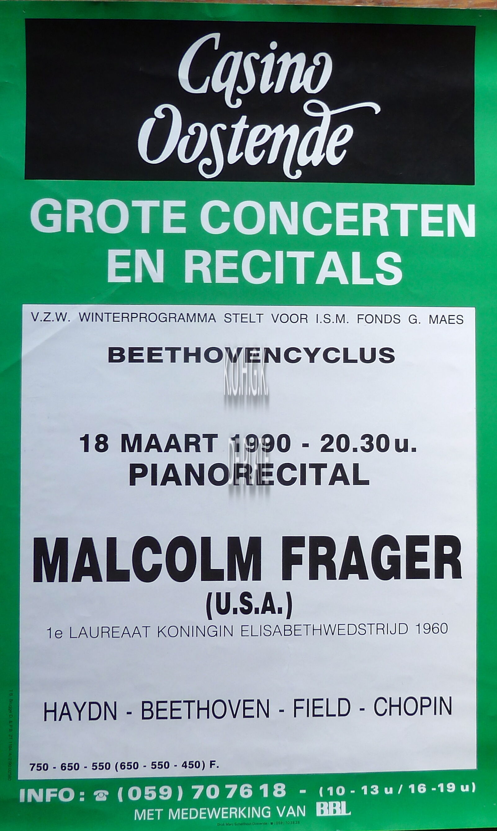 Formaat : 60 x 38 cm. - Deel van de Beethovencyclus (v.z.w. Winterprogramma & Fonds Georges Maes). - 1e laureaat koningin Elisabethwedstrijd 1960. Haydn, Beethoven, Field, Chopin