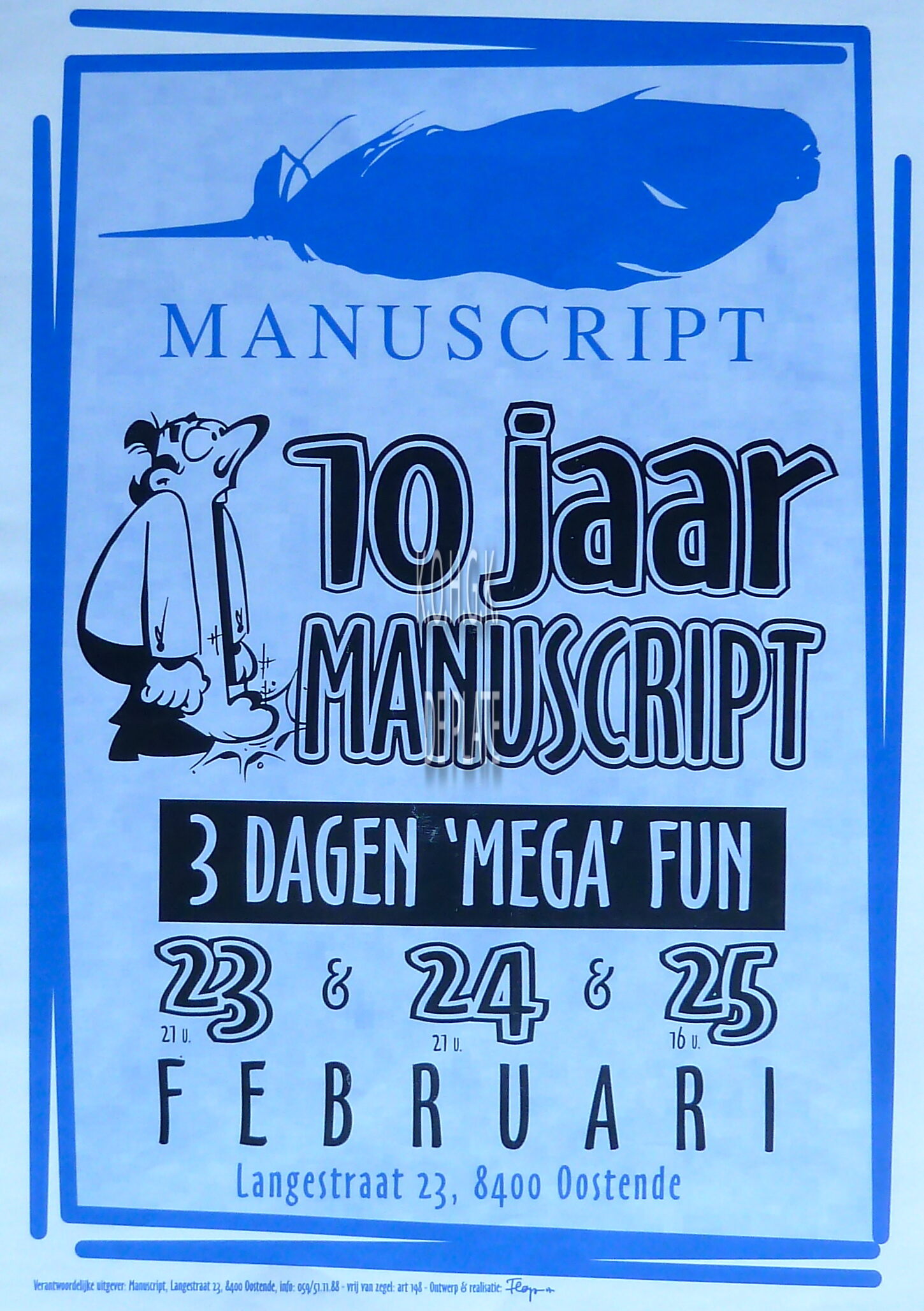 Omschrijving Formaat : 43 x 30 cm. Trefwoorden AFFICHES MANUSCRIPT (CAFE) LANGESTRAAT EVENEMENTEN Plaatskenmerk ZOLDER 301 LKA/13/780/63/0012 Inventarisnummers 2018/0688 Uitgever Manuscript Herkomst AANKOOP Collectie Muziek Manuscript Print