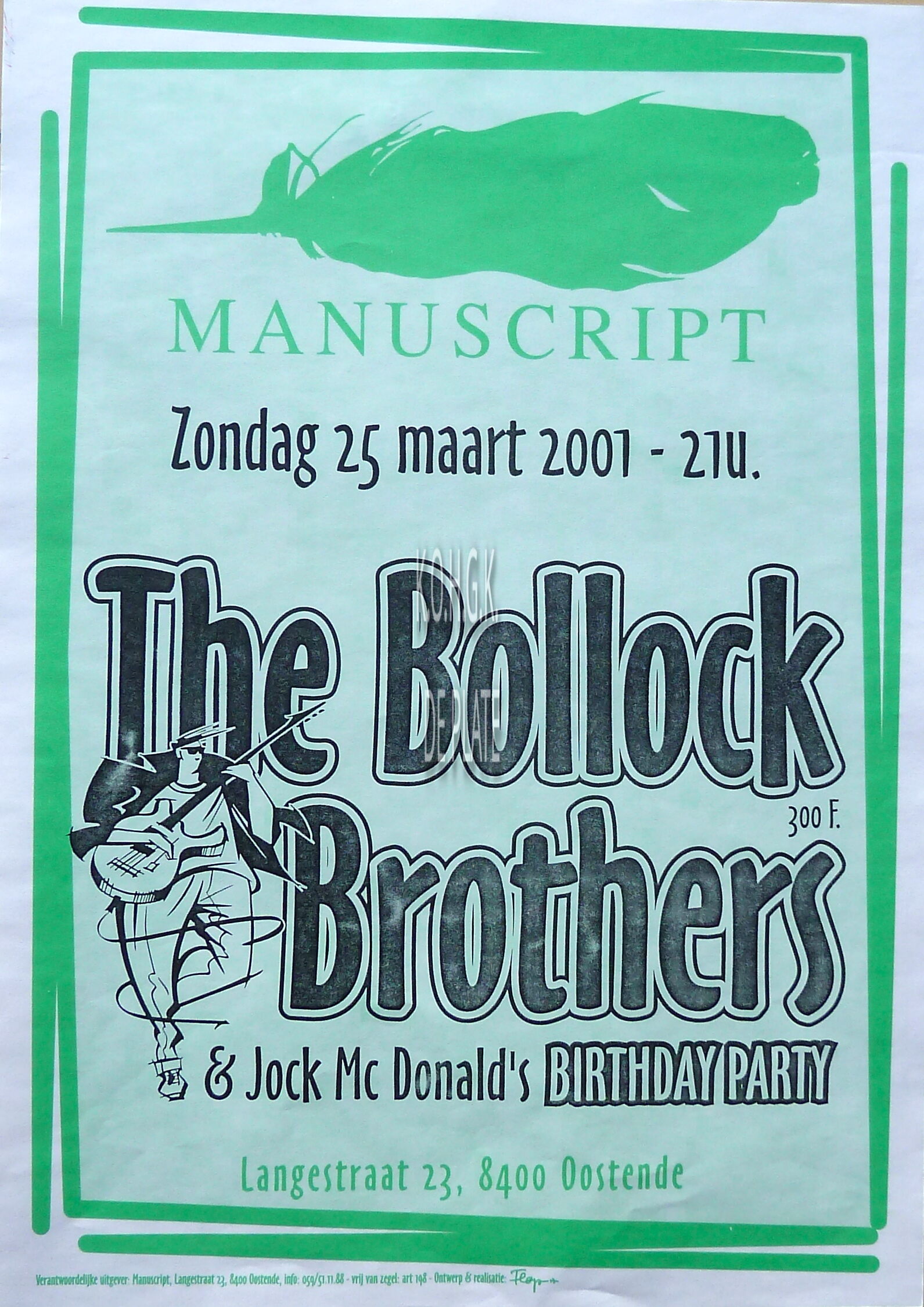 Omschrijving Formaat : 43 x 30 cm. Trefwoorden AFFICHES MANUSCRIPT (CAFE) MUZIEK ; CONCERTEN LANGESTRAAT THE BOLLOCK BROTHERS (MUZIEKGROEP) Plaatskenmerk ZOLDER 301 LKA/13/780/63/2001-03 Inventarisnummers 2018/0694 25/ 03/ 2001 Uitgever Manuscript Herkomst AANKOOP Collectie Muziek Manuscript Print