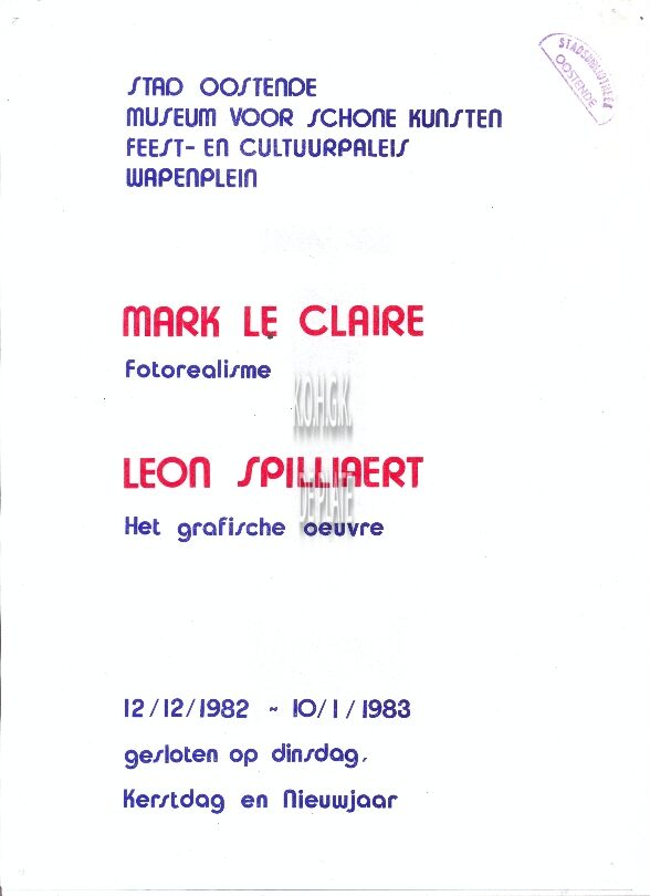 Omschrijving Formaat : 30 x 21 cm. Trefwoorden AFFICHES MUSEUM VOOR SCHONE KUNSTEN ; TENTOONSTELLINGEN LE CLAIRE MARK (KUNSTSCHILDER) SPILLIAERT LEON (1881-1946) (KUNSTSCHILDER) Plaatskenmerk ZOLDER 301 LKA/06/700.41/02/1982-1983/MAP 1 Inventarisnummers 2013/2310 1982 1983 Collectie Tentoonstellingen Musea Museum voor Schone Kunsten Print