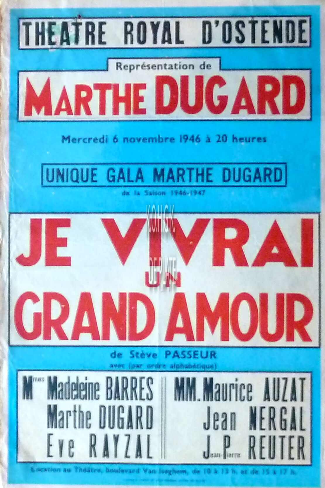 Formaat : 55 x 37 cm. Unique Gala Marthe Dugard de la Saison 1946-1947. De Stève Passeur avec Mmes Madeleine Barres, Marthe Dugard , Eve Rayzal. MM. Maurice Auzat, Jean Nergal, Jean-Pierre Reuter.