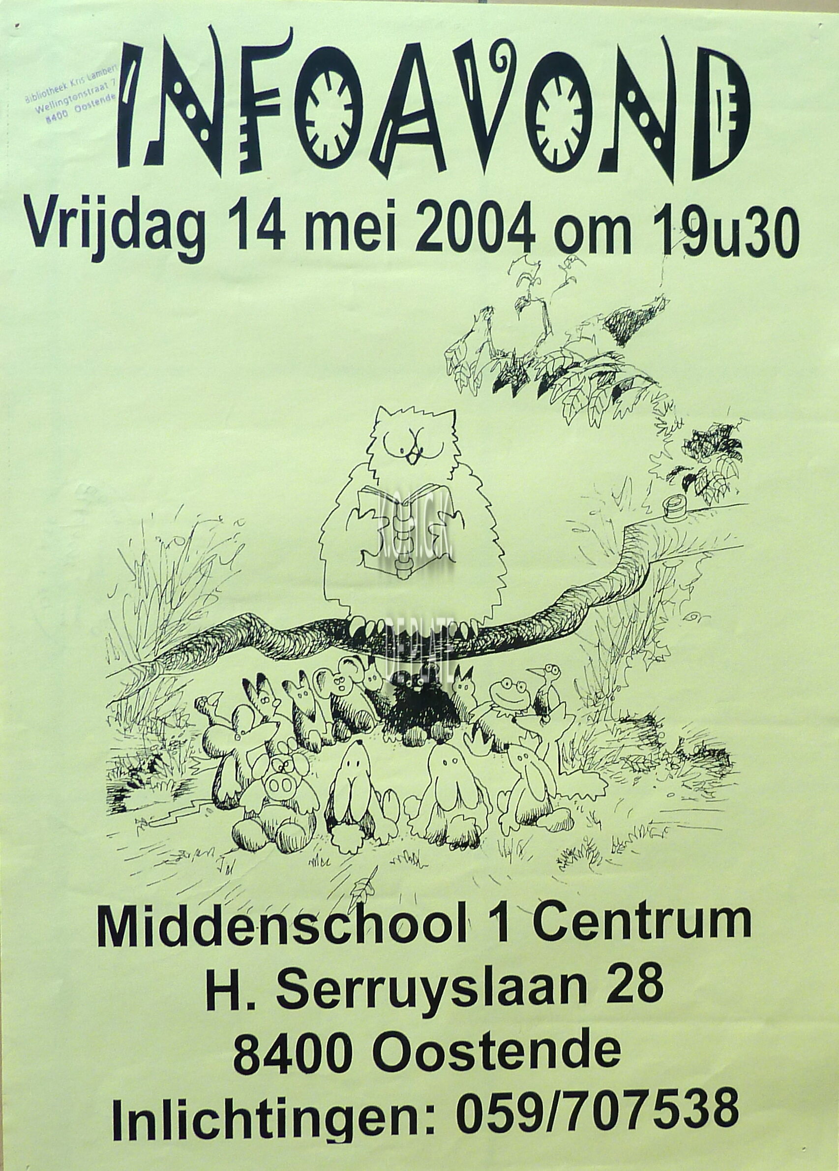 Affiche : Middenschool 1 Centrum. Infoavond. Hendrik Serruyslaan 28, 8400 Oostende. 14/05/2004