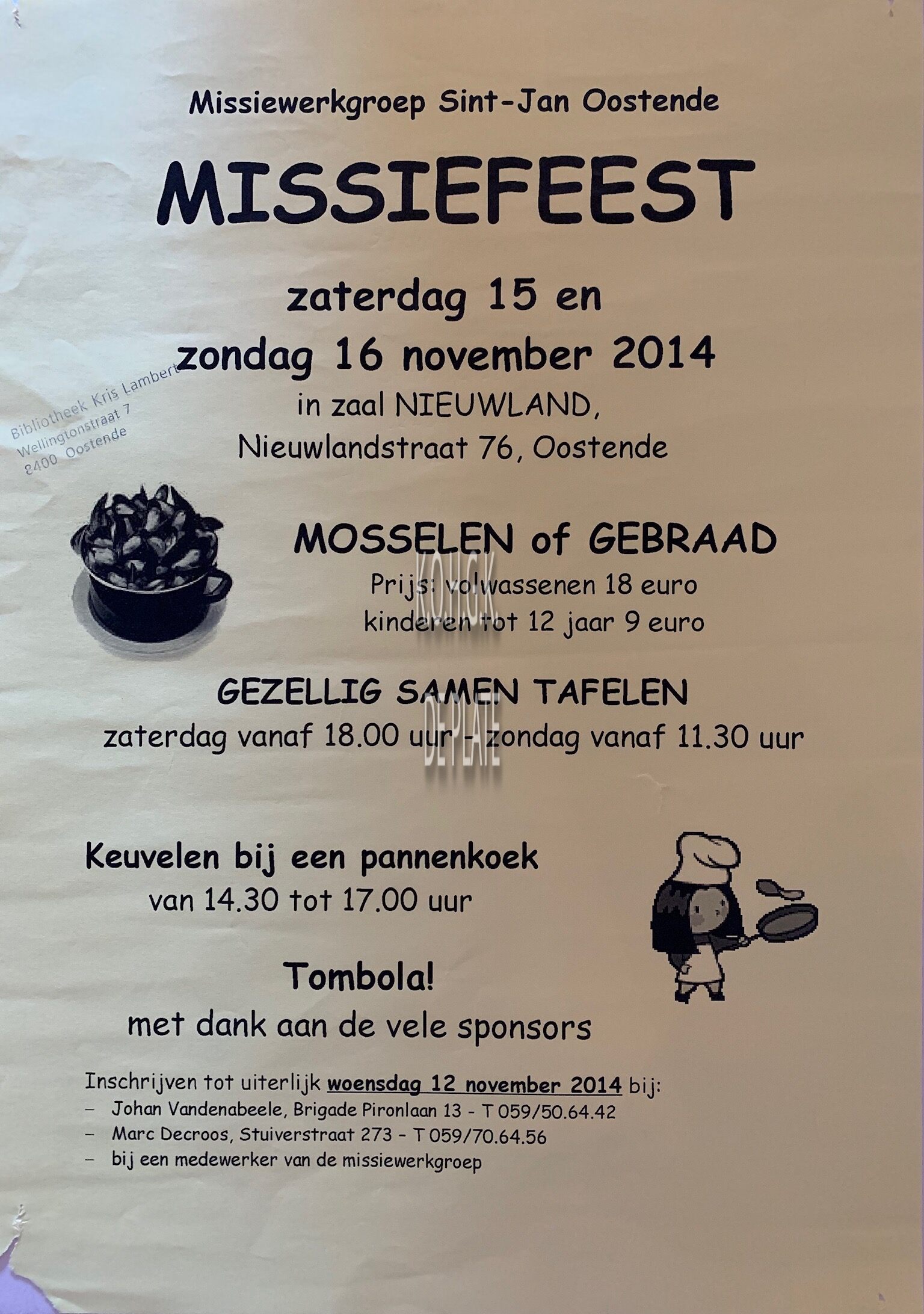 Omschrijving Formaat : 42 x 30 cm. Trefwoorden AFFICHES MISSIEWERKGROEP ST.-JAN OOSTENDE ZAAL NIEUWLAND MISSIEFEESTEN Plaatskenmerk ZOLDER 301 LKA/02/244/01/2014-11 Inventarisnummers 2019/2088 11/ 2014 Herkomst BIBLIOTHEEK KRIS LAMBERT Collectie Kerk en Maatschappij Algemeen Print