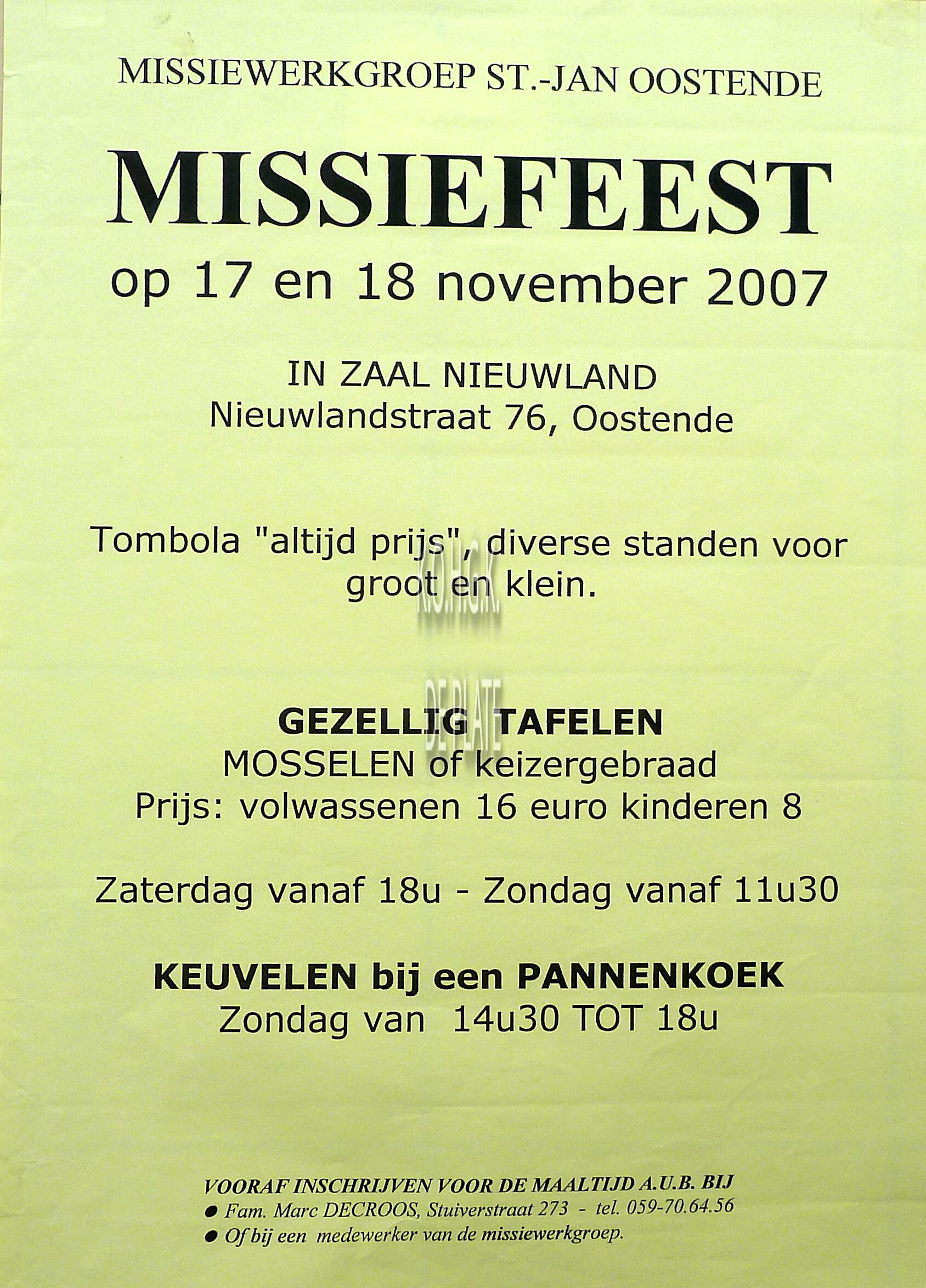 Omschrijving Formaat : 42 x 30 cm. Trefwoorden AFFICHES MISSIEWERKGROEP ST.-JAN OOSTENDE MISSIEFEESTEN ZAAL NIEUWLAND Plaatskenmerk ZOLDER 301 LKA/19/912.2/56/2007-11 Inventarisnummers 2008/0345 11/ 2007 Herkomst BIBLIOTHEEK KRIS LAMBERT Collectie Wijkfeesten - Kermissen Sint Jan Print