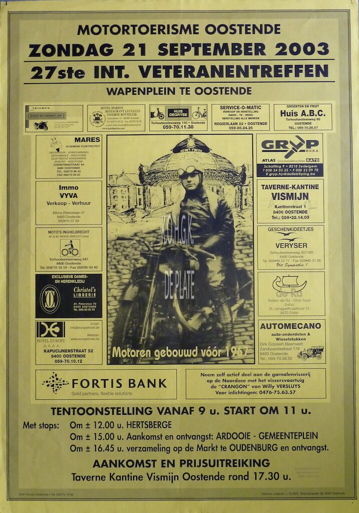 Affiche : Motertoerisme Oostende. 27ste internationale veteranentreffen. Wapenplein (Oostende). zondag 21 september 2003
