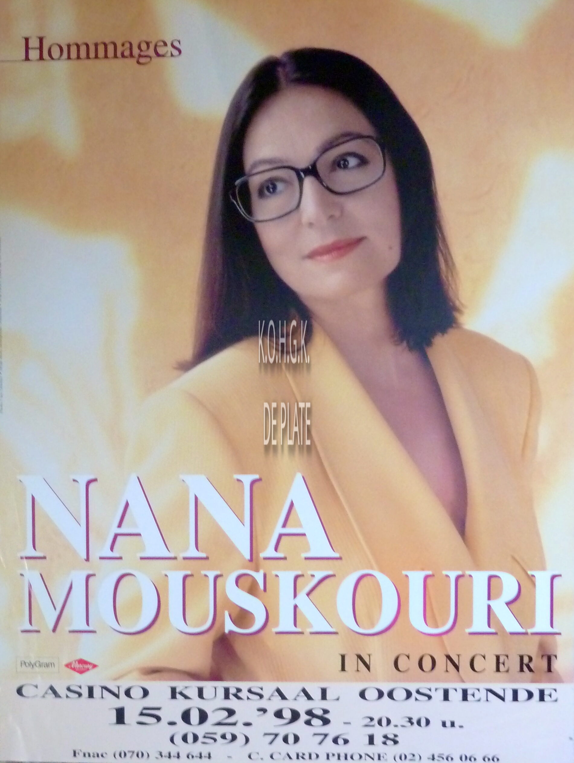 Affiche : Nana Mouskouri. In Concert. Casino Kursaal Oostende. Op 15 januari 1998