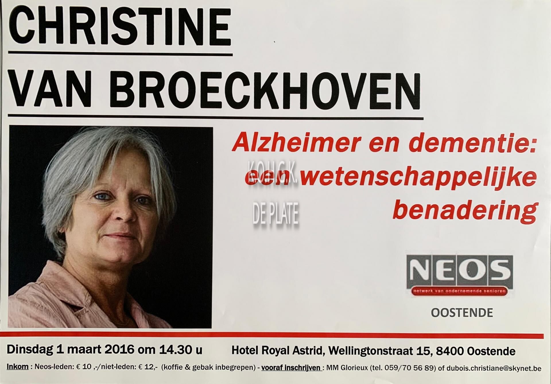 Omschrijving Formaat : 30 x 42 cm. Trefwoorden NEOS (NETWERK VAN ONDERNEMENDE SENIOREN) AFFICHES VOORDRACHTEN DEMENTIE (ZIEKTE) HOTEL ROYAL ASTRID ALZHEIMER (ZIEKTE) VAN BROECKHOVEN CHRISTINE (MOLECULAIR BIOLOGE) Plaatskenmerk ZOLDER 301 LKA/04/493/54/2016-03 Inventarisnummers 2020/0811 01/ 03/ 2016 Herkomst BIBLIOTHEEK KRIS LAMBERT Collectie Socio- Culturele Verenigingen Neos Print