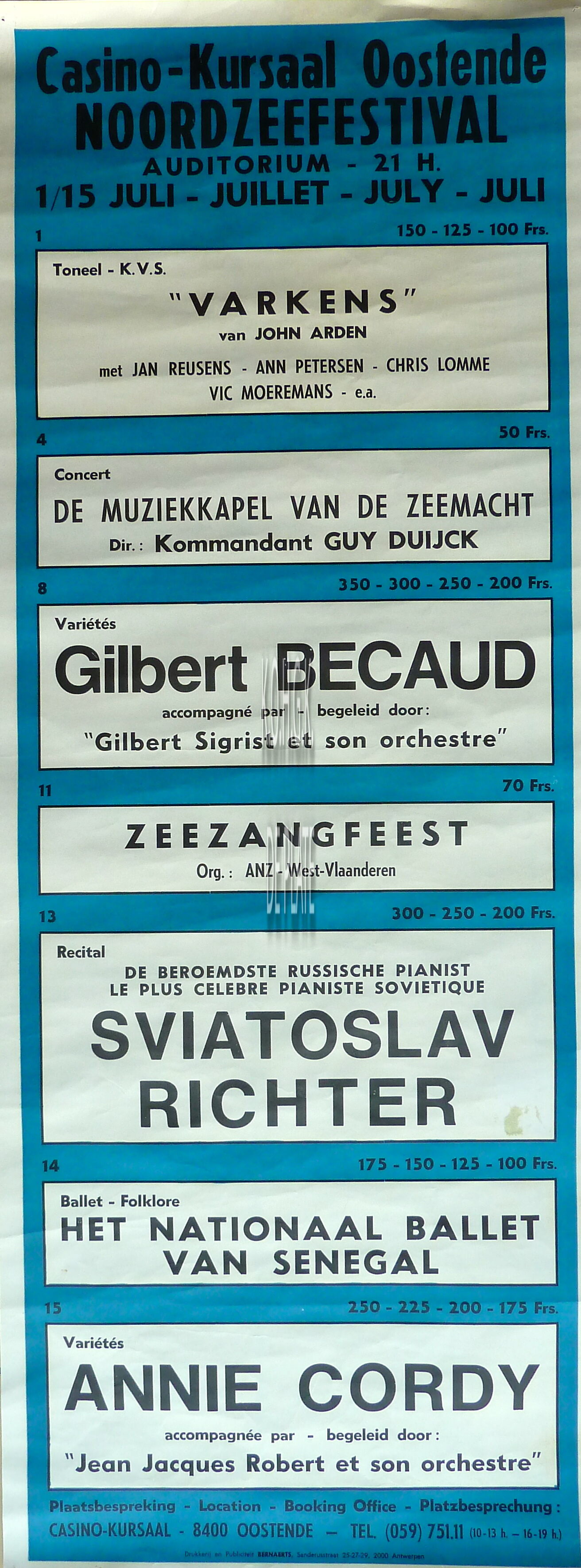 - 13 augustus: Recital: De beroemdste russische pianist le plus celebre pianiste sovietique. Sviatoslav Richter.