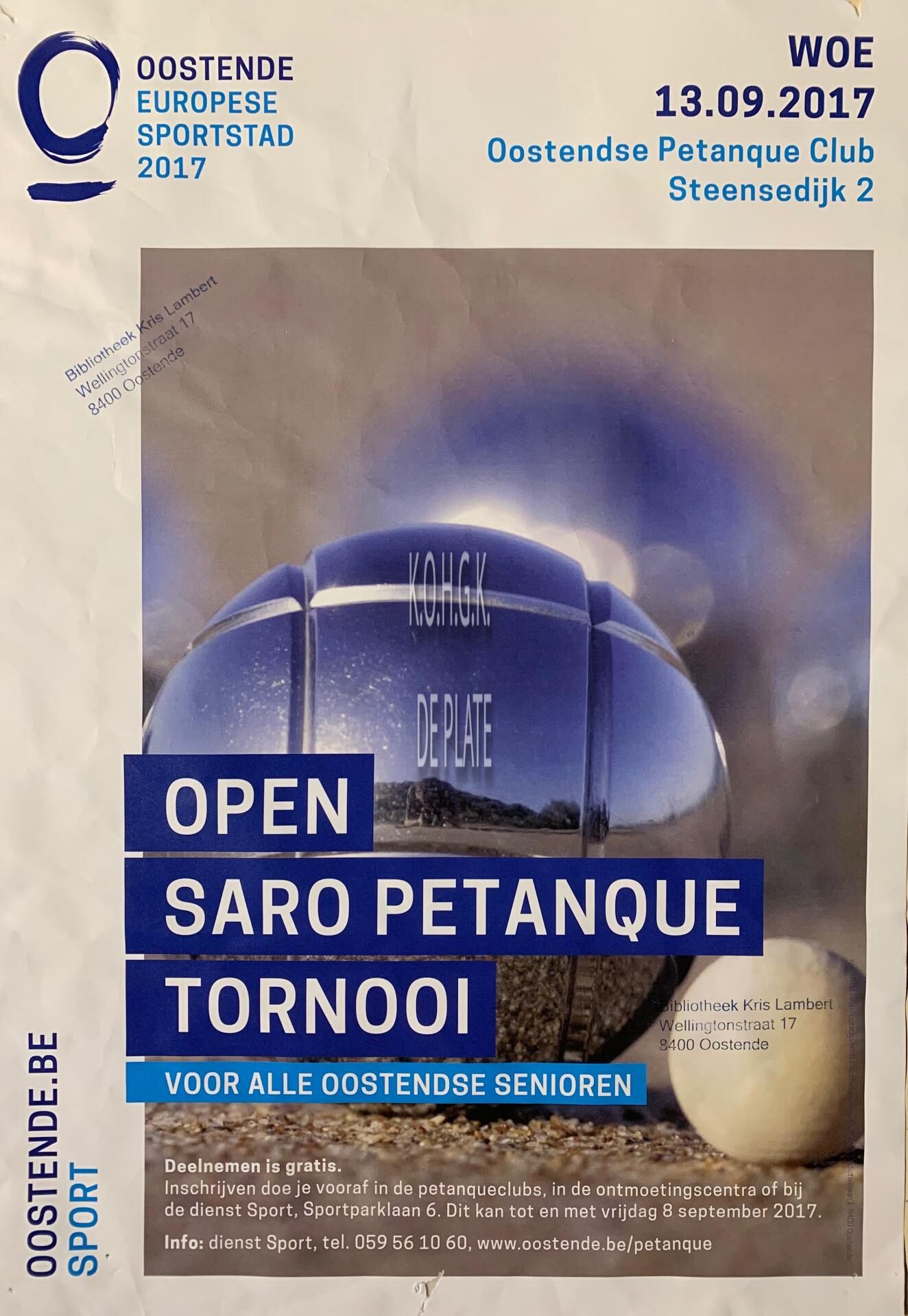 Omschrijving Formaat : 42 x 30 cm Trefwoorden AFFICHES OOSTENDSE PETANQUE CLUB SPORT ; PETANQUE VERENIGINGEN ; SPORT STEENSEDIJK Plaatskenmerk ZOLDER 301 LKA/17/619.9/01/2017 Inventarisnummers 2019/2108 13/ 09/ 2017 Herkomst BIBLIOTHEEK KRIS LAMBERT Collectie Sport Pétanque Algemeen Print