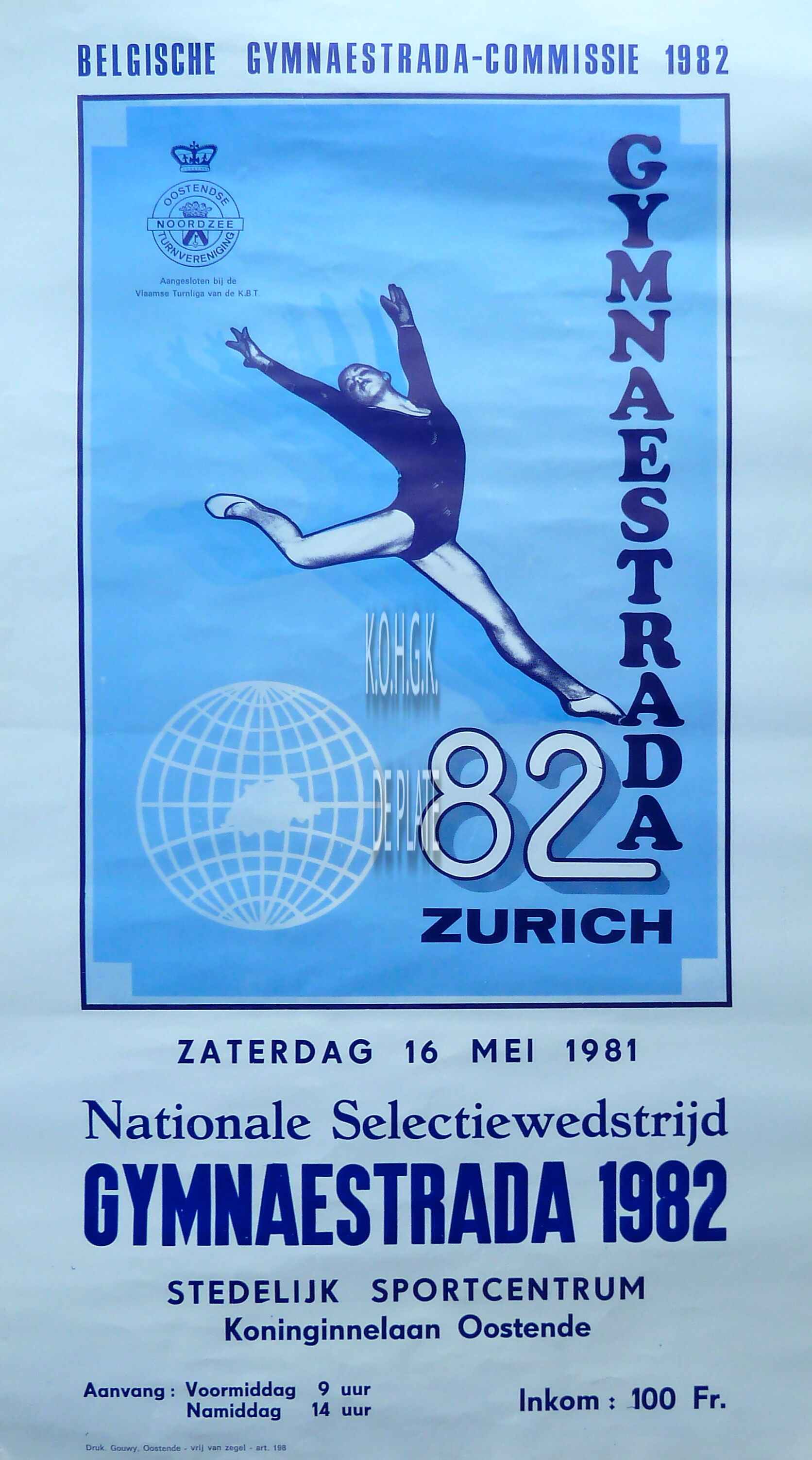 Affiche : Oostendse Turnvereniging Noordzee. Gymnaestada 1982. Stedelijk Sportcentrum. 16/05/1981