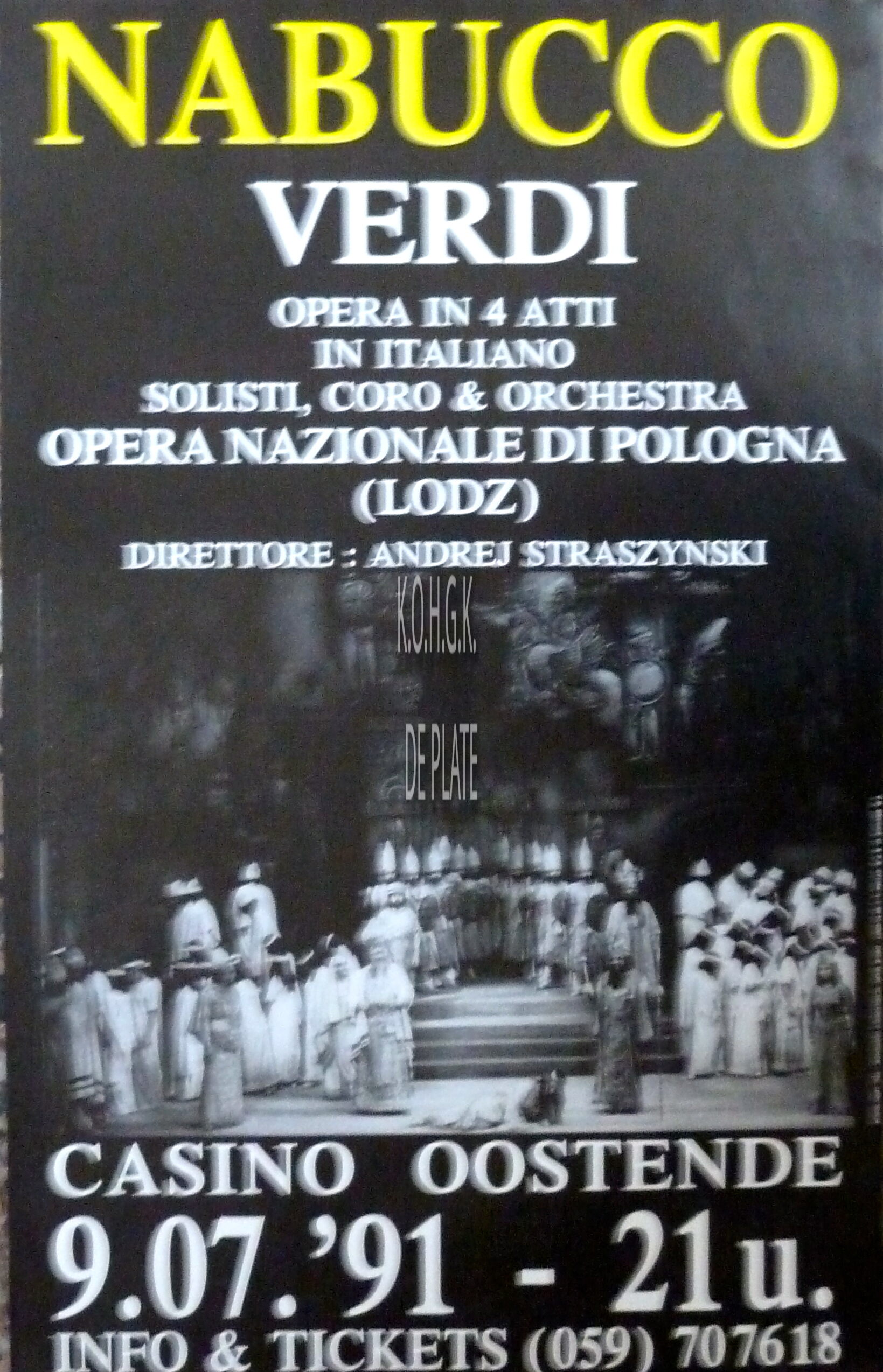 Affiche : Opera Nazionale Di Pologna (Lodz). Nabucco. Casino Oostende. 09/07/1991