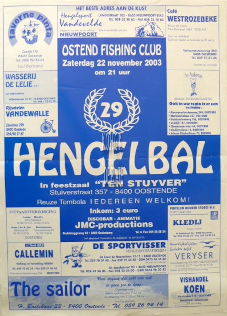 Formaat : 64 x 46 cm. Feestzaal Ten Stuyver. Stuiverstraat 357, 8400 Oostende. Discobar-animatie. JMC-productions. Oudebruggeweg 62, 8460 Oudenburg