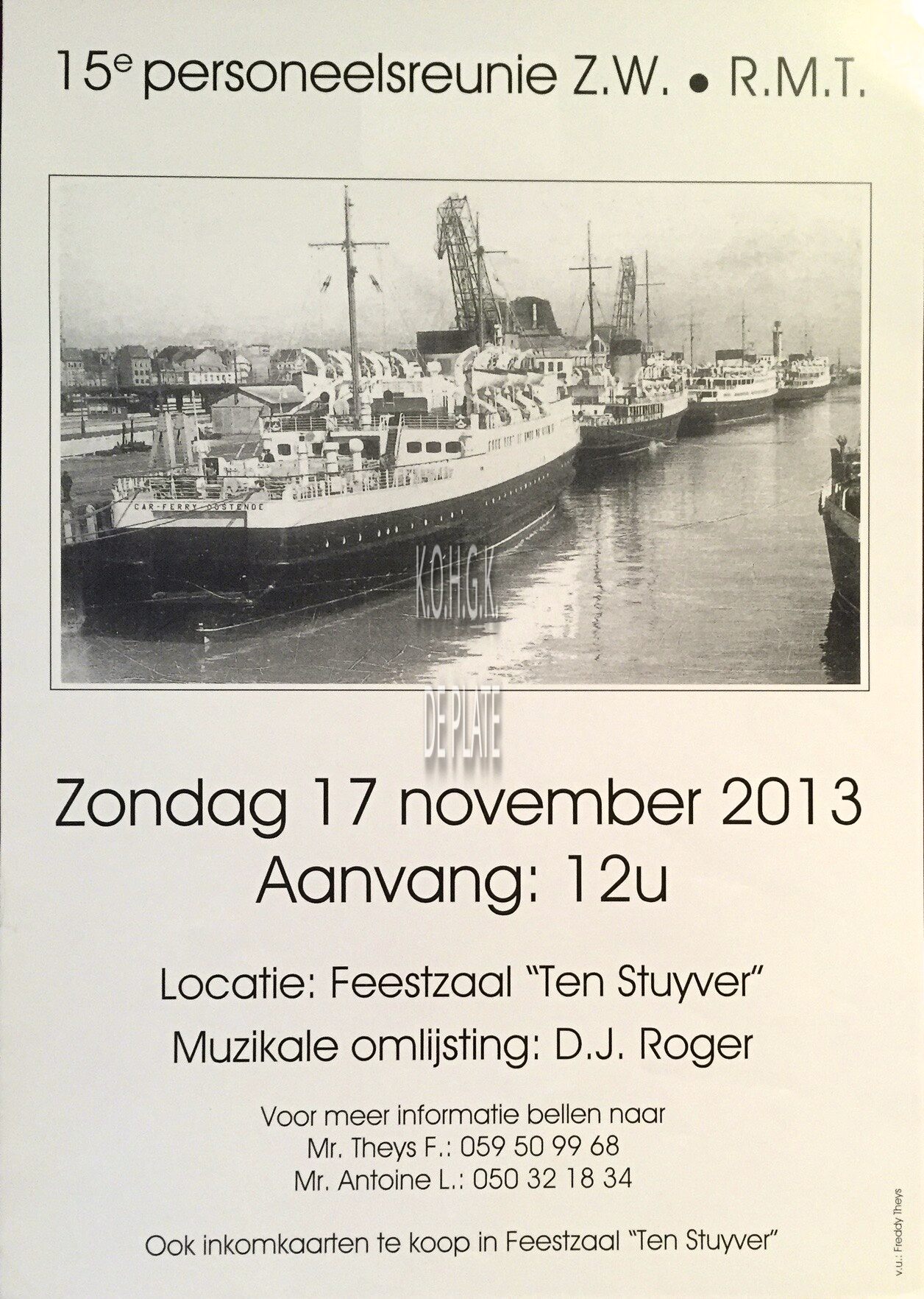 Affiche : Regie voor Maritiem Transport. Bestuur van Zeewezen. 15de Personeelsreunie. Feestzaal "Ten Stuyver". 17/11/2013