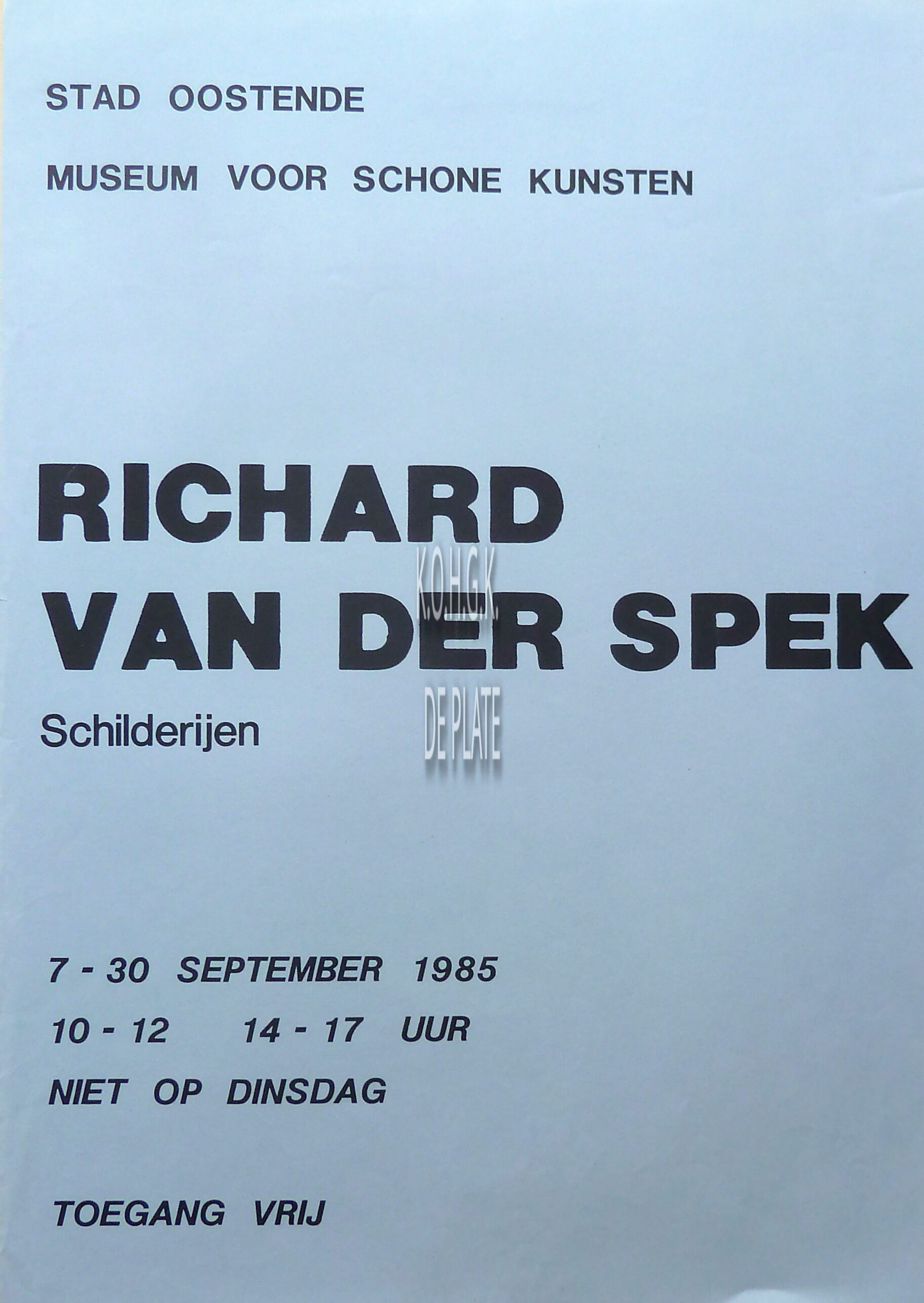 Affiche : Richard Van Der Spek. Schilderijen. Museum voor Schone Kunsten. 7 - 30 september 1985