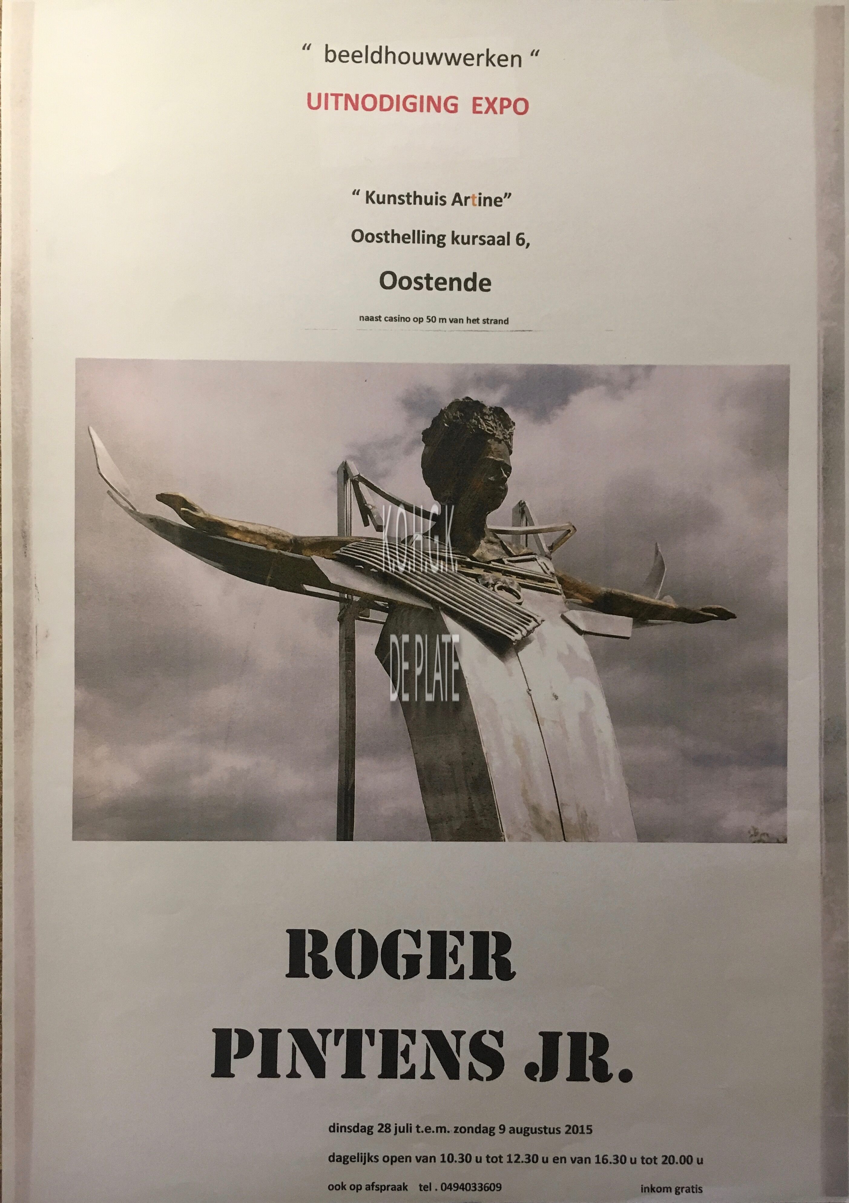 Omschrijving Formaat: 42 x 30 cm Trefwoorden AFFICHES KUNSTHUIS ARTINE (KUNSTGALERIJ) PINTENS ROGER (KUNSTSMID) Plaatskenmerk ZOLDER 301 LKA/08/700.4/77/2015-07 Inventarisnummers 2017/2895 28/ 07/ 2015 Collectie Tentoonstellingen Kunsthuis Artine Print