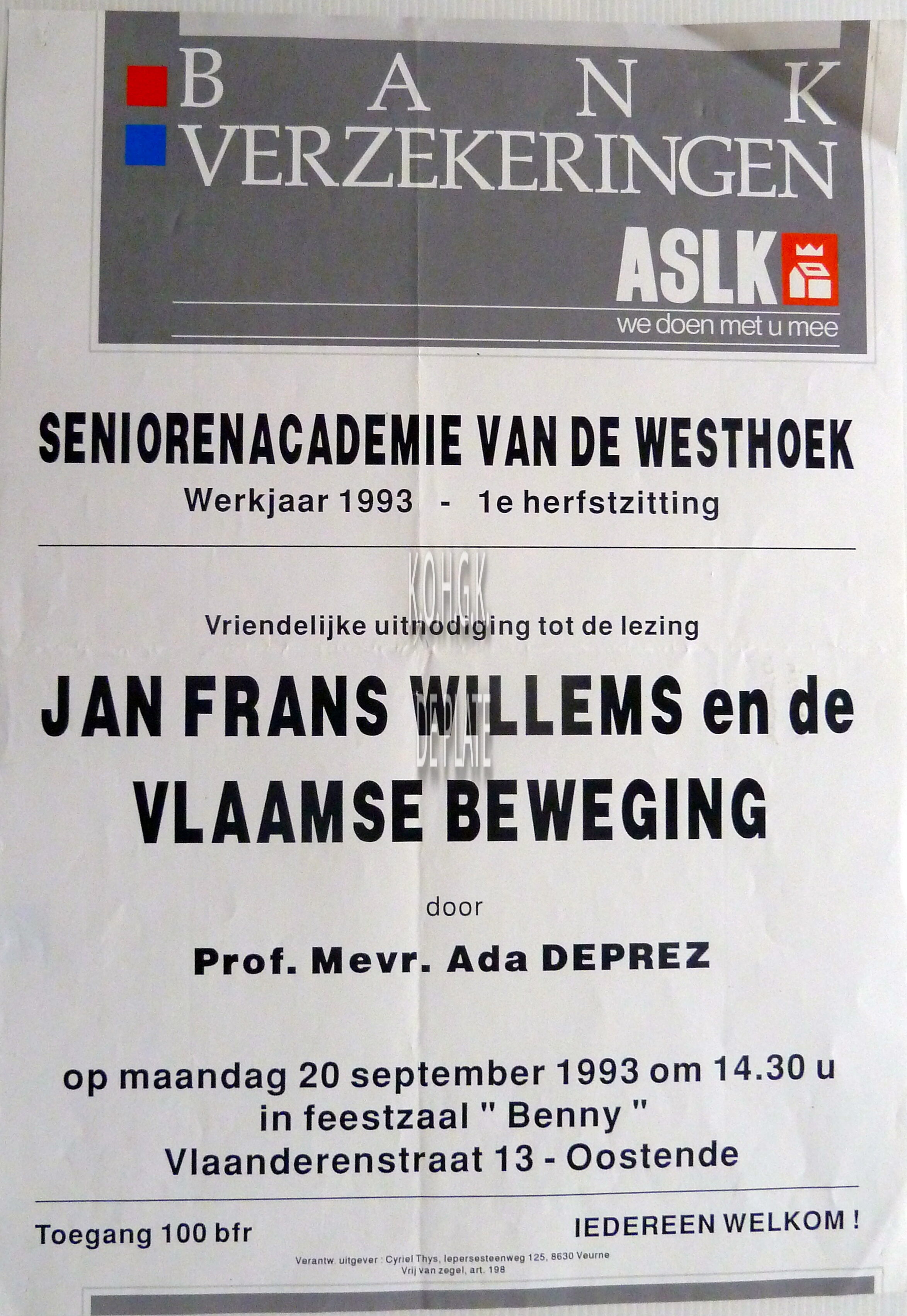 Omschrijving Formaat : 42 x 30 cm. Trefwoorden AFFICHES SENIORENACADEMIE VAN DE WESTHOEK DEPREZ ADA VOORDRACHTEN BENNY (RESTAURANT TEAROOM FEESTZAAL) Plaatskenmerk ZOLDER 301 LKA/01/490/01/1993-09 Inventarisnummers 2016/0333 20/ 09/ 1993 Uitgever Cyriel Thys Collectie Cultuurwerk Algemeen Print