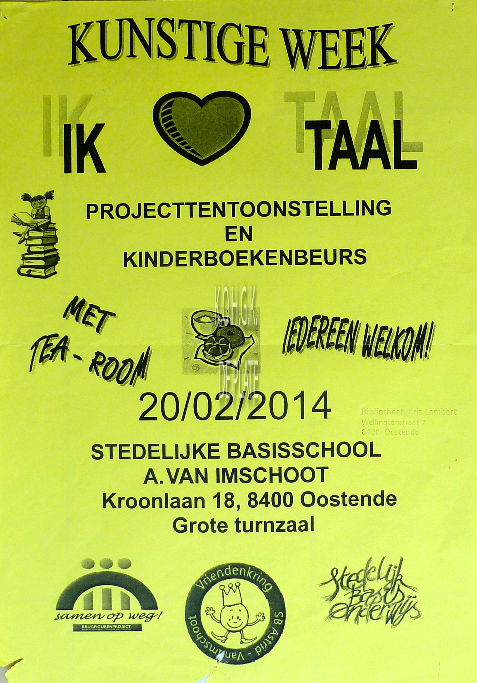 Affiche : Stedelijke basisschool Astrid Van Imschoot. Kunstige Week. Kroonlaan 18. 20/02/2014
