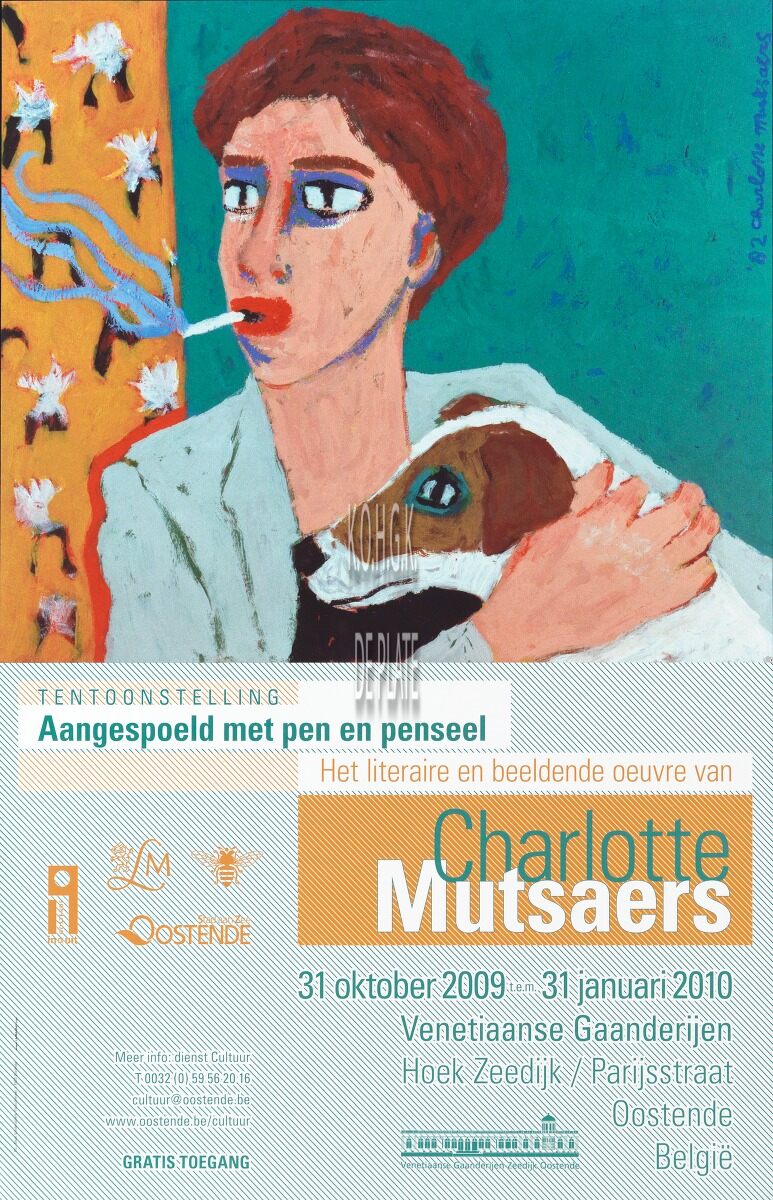 Affiche : Tentoonstelling aangespoeld met pen en penseel : het literaire en beeldende oeuvre van Charlotte Mutsaers. Venetiaanse Gaanderijen. 31 oktober 2009 t.e.m. 31 januari 2010