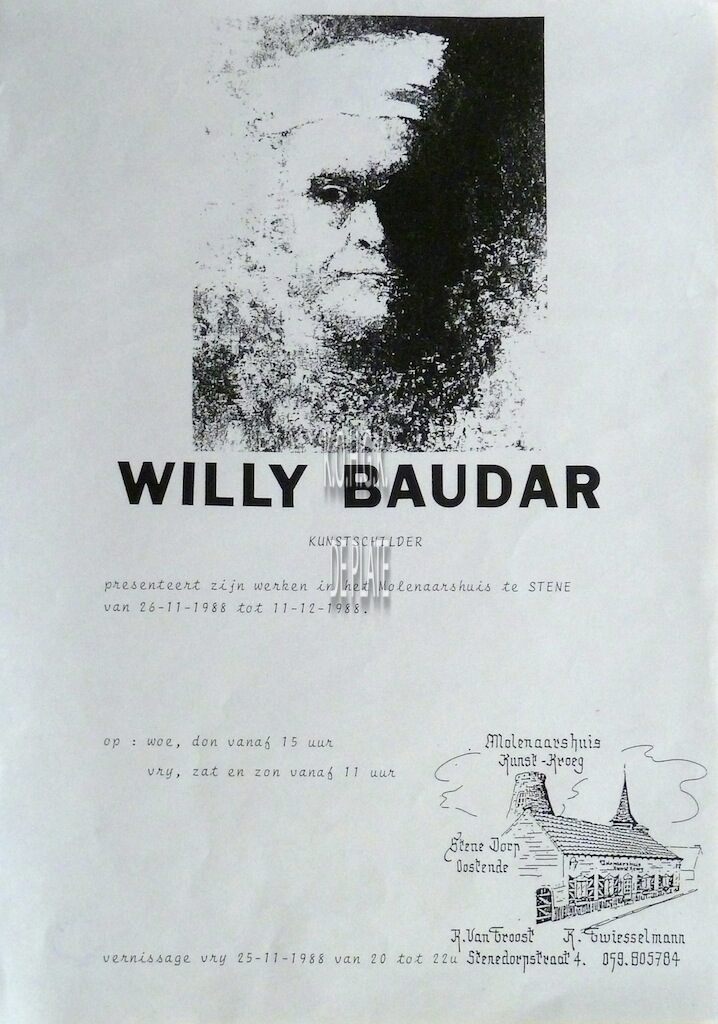 Affiche : Tentoonstelling. Kunstschilder Willy Baudar. Molenaarshuis Stene. 29/11 tot 11/12/1988.
