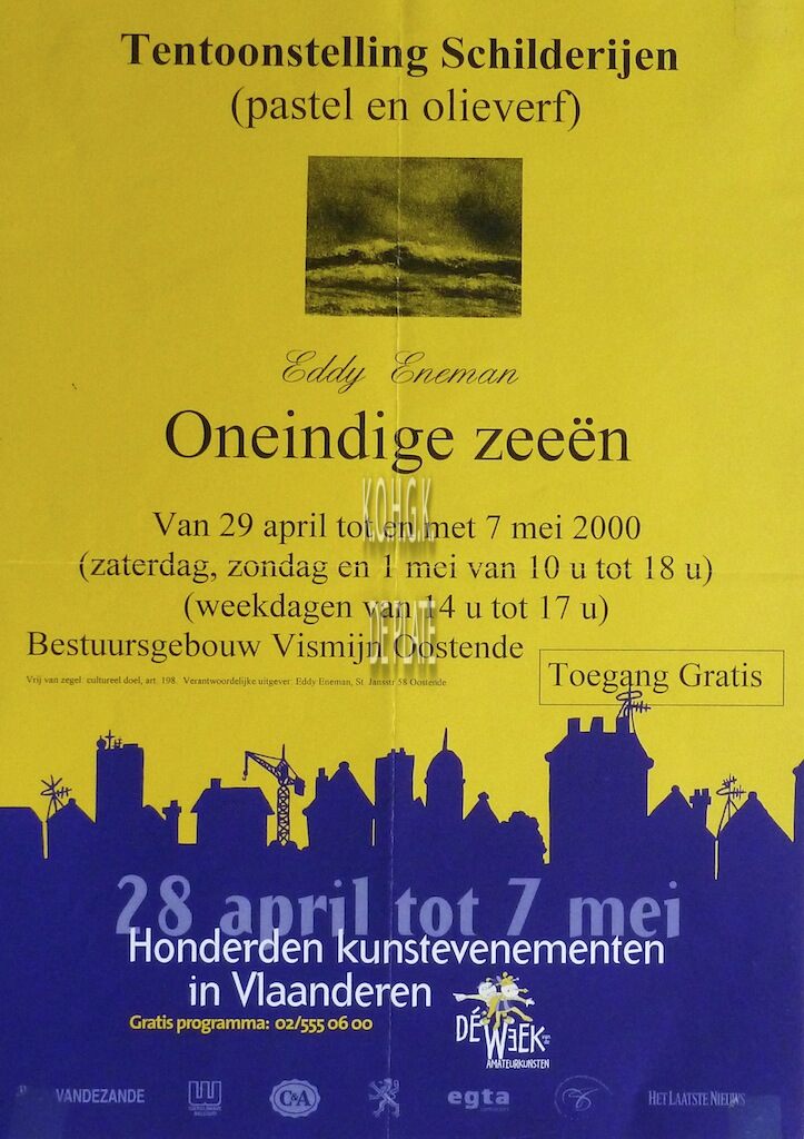 Omschrijving Formaat : 42 x 30 cm. Trefwoorden VISMIJN ; ALGEMEEN KUNSTTENTOONSTELLINGEN AFFICHES ENEMAN EDDY (AUTEUR KUNSTSCHILDER) WAK (WEEK VAN DE AMATEURKUNSTEN) Plaatskenmerk ZOLDER 301 LKA/08/700.4/95/2000 Inventarisnummers 2004/0538 2000 Uitgever Eddy Eneman Herkomst MSKO Collectie Tentoonstellingen Vismijn Print