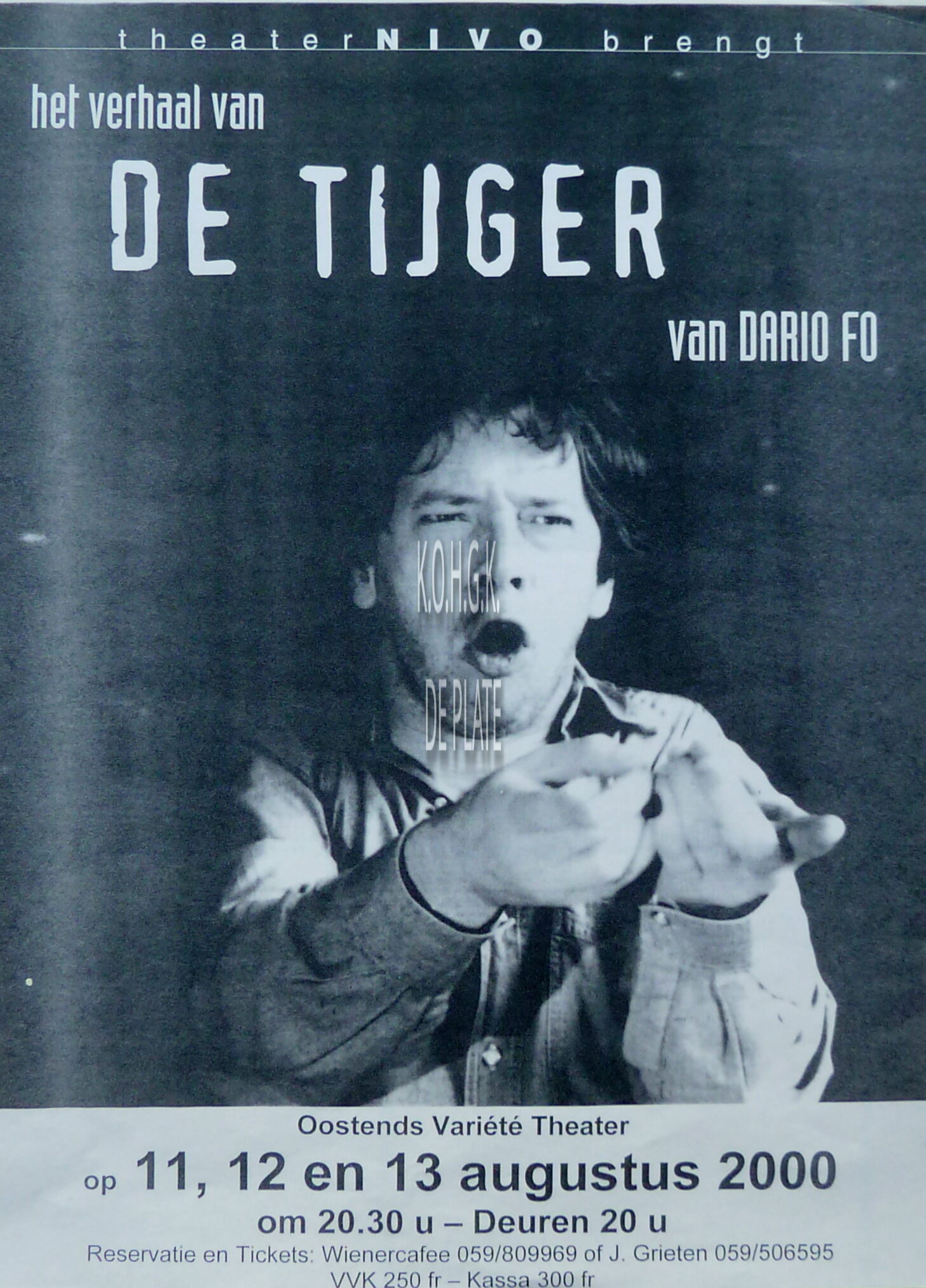 Omschrijving Formaat : 40 x 30 cm. - Van Dario Fo Trefwoorden AFFICHES DE TIJGER EN ANDERE VERHALEN (4 MONOLOGEN) TONEELSTUKKEN THEATER NIVO FO DARIO (1926-2016) (AUTEUR) OOSTENDS VARIÉTÉ THEATER Plaatskenmerk ZOLDER 301 LKA/15/792/59/2000-08 Inventarisnummers 2017/2782 08/ 2000 Herkomst AANKOOP Collectie Toneel Variététheater Print